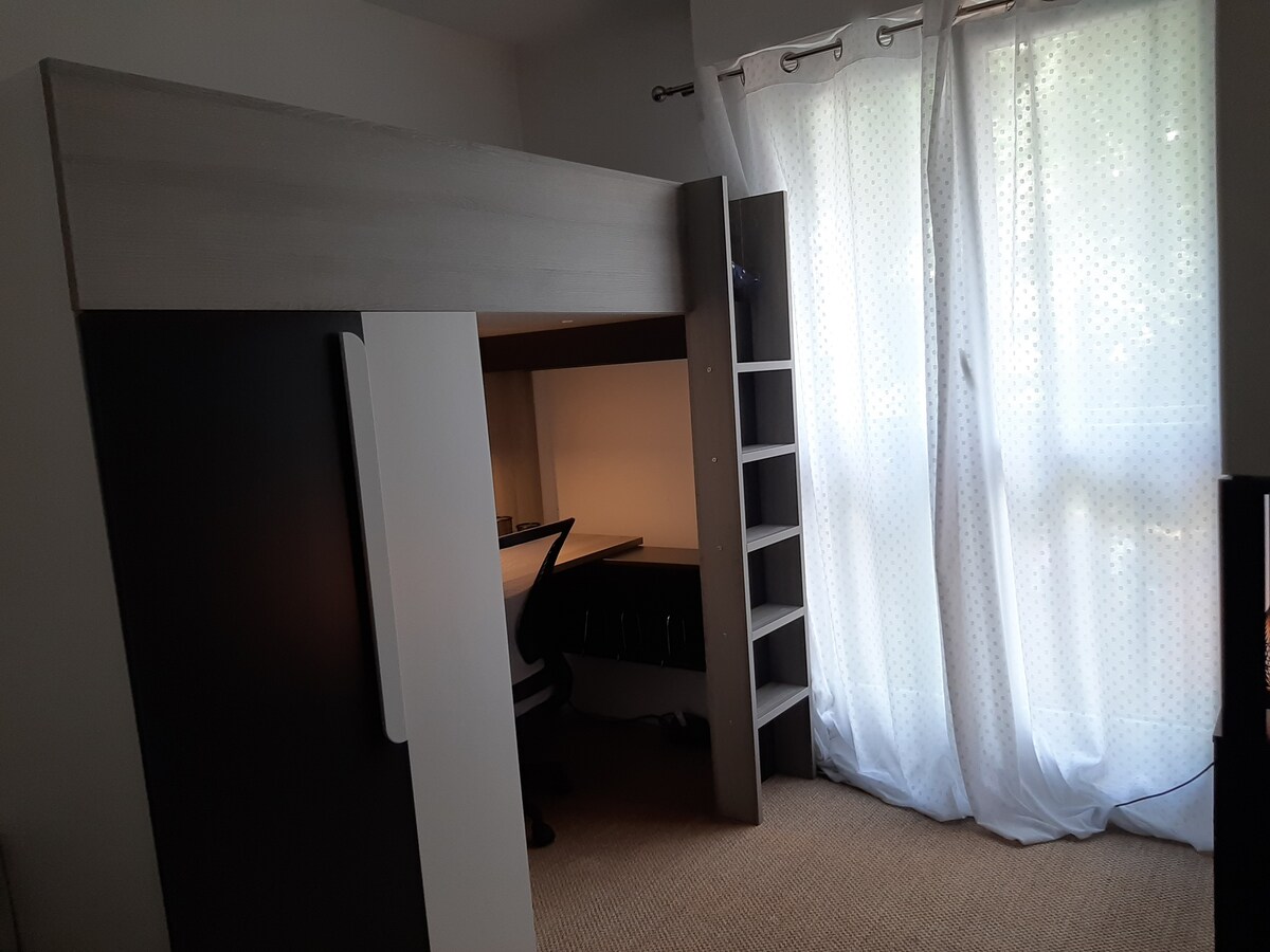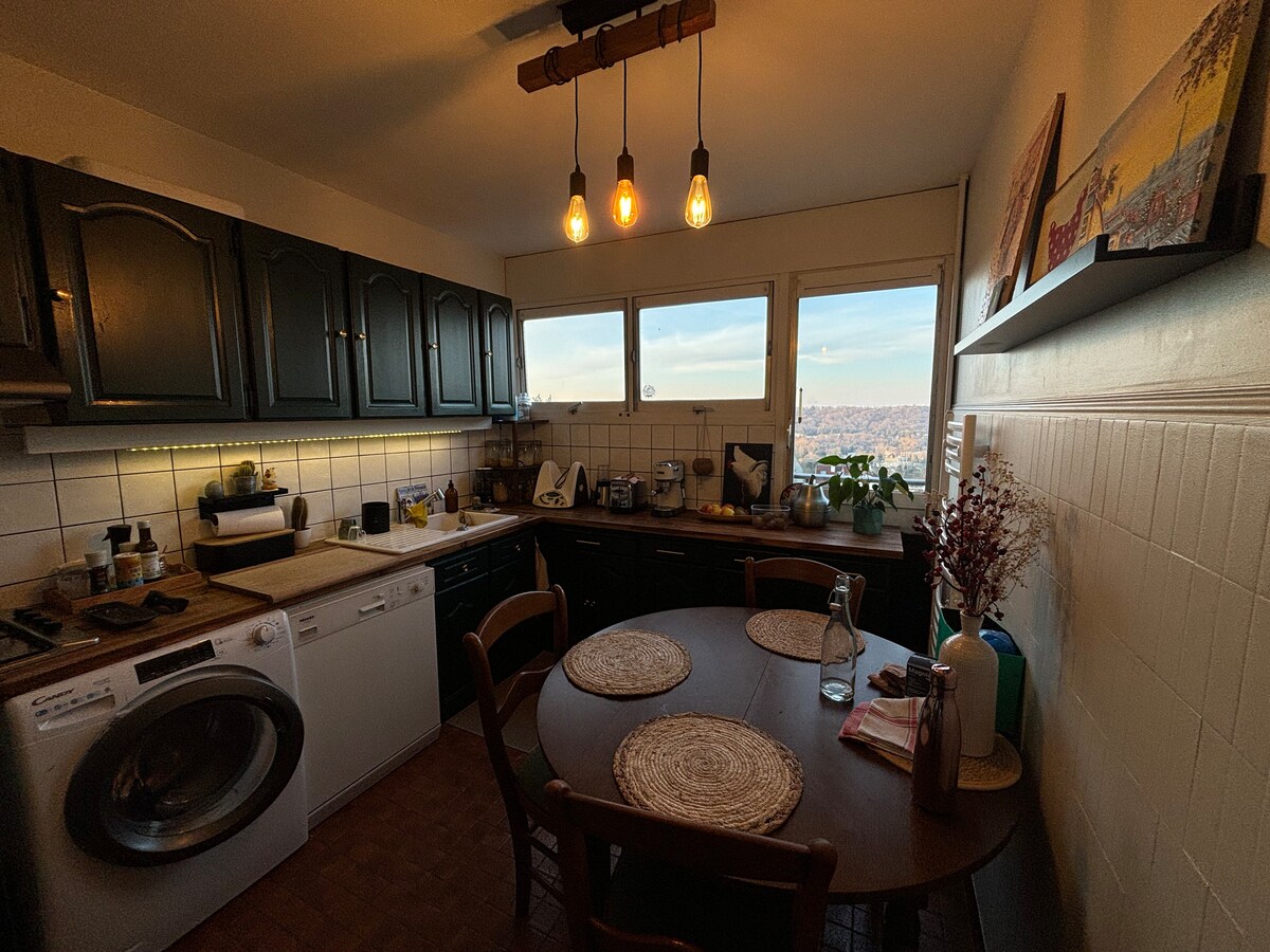 Close to all amenities, a few minutes from the city center. Bus lines are minutes from the apartment, on the top floor, the view is nice and there is no busy street. The environment is quiet and well located. The apartment is suitable for a furnished rental and is fully equipped. 10/15 min by bus from the Orsay university campus.