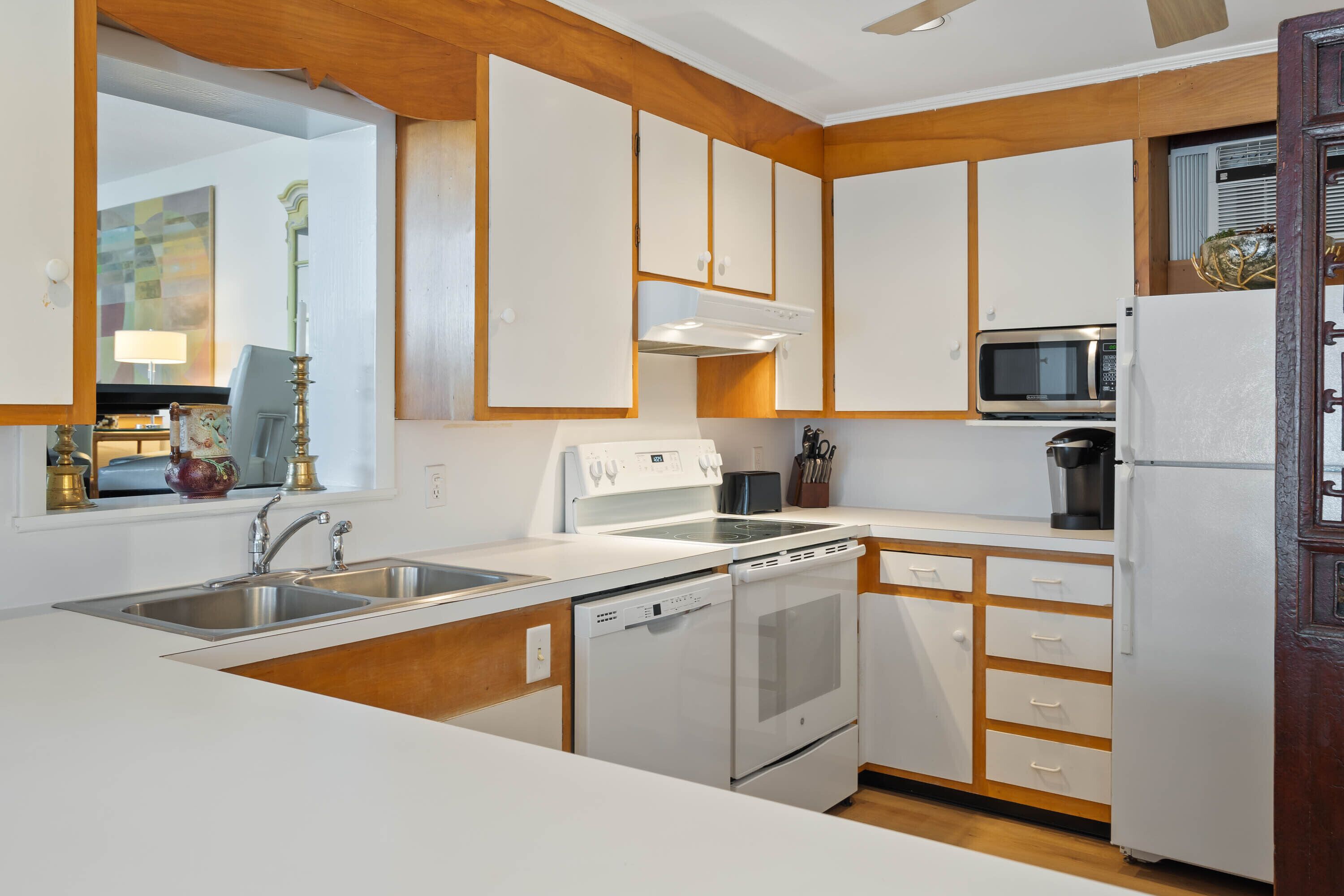 The kitchen is equipped with all the creature comforts of home, appliances and all cooking essentials, pots/pans/utensils/plates etc.