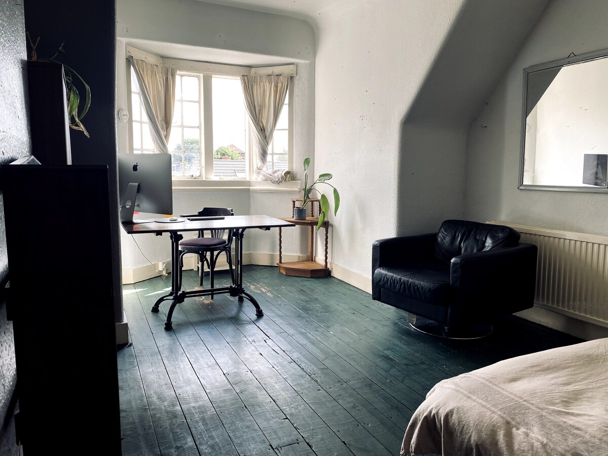 Welcome to my studio, you will be sleeping on the large sofa bed on the top floor of the building with a panoramic view of the neighbourhood and beyond.