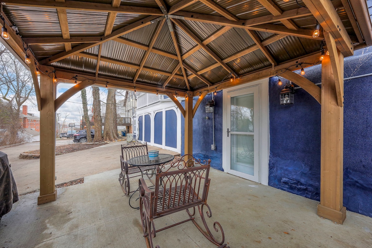 Guests have access to all of the porches-front, back and top porch but have a private porch area off the back of the kitchen