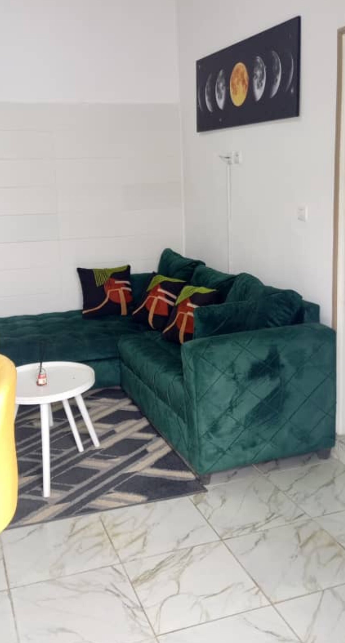 Comfortable furnished apartment in Okala, 15 minutes from the airport. Alone in its fence and direct access to the tar. Secure and residential area, the apartment is located close to all amenities. WIFI available, Canal SAT connection, air conditioning in the bedroom and in the living room, water heater. We also offer a free transfer from the airport. Possibility of providing a car with driver during the stay.