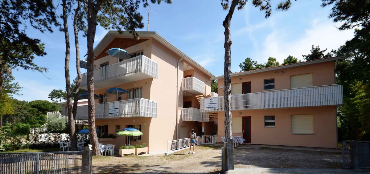 Small complex (16 residential units) with pool, about one kilometer from the sea, at the beginning of the Sabbiadoro district. You are in a quiet area, surrounded by greenery. Nice bars and inviting restaurants can be reached within a few minutes. Despite the proximity to the city center, you can enjoy a quiet and relaxed location and thus a relaxing beach holiday. Alternatively, you can relax in the communal outdoor pool (open from the beginning of June to mid-September, depending on the weather) with loungers. Extras included: Invitation to wine tasting with typical snacks (in Bibione, only in high season) Beach services (1 deck chair, 1 lounger, 1 parasol), approx. from May to mid-September 10% discount in various restaurants and shops 20% green fee discount (from Monday to Friday) at the 18-hole Lignano Golf Club Mobility: Not suitable for people with limited mobility
