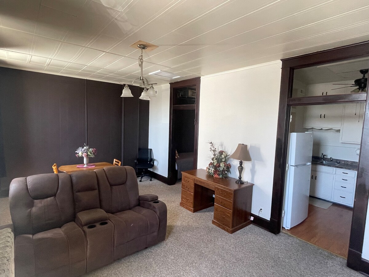 This darling 1BR/1BA little nook is perfect for a single professional or a close knit couple! Built in 1903, this iconic building, located in the picturesque downtown of Wapakoneta (a real live "Mayberry" town!), is home to "#6", a classic one bedroom apartment, with a fully furnished living room and kitchen, thats sits in our quaint city to spend your day working, shopping and dining! This cozy little spot is sure to make your stay so very comfortable!