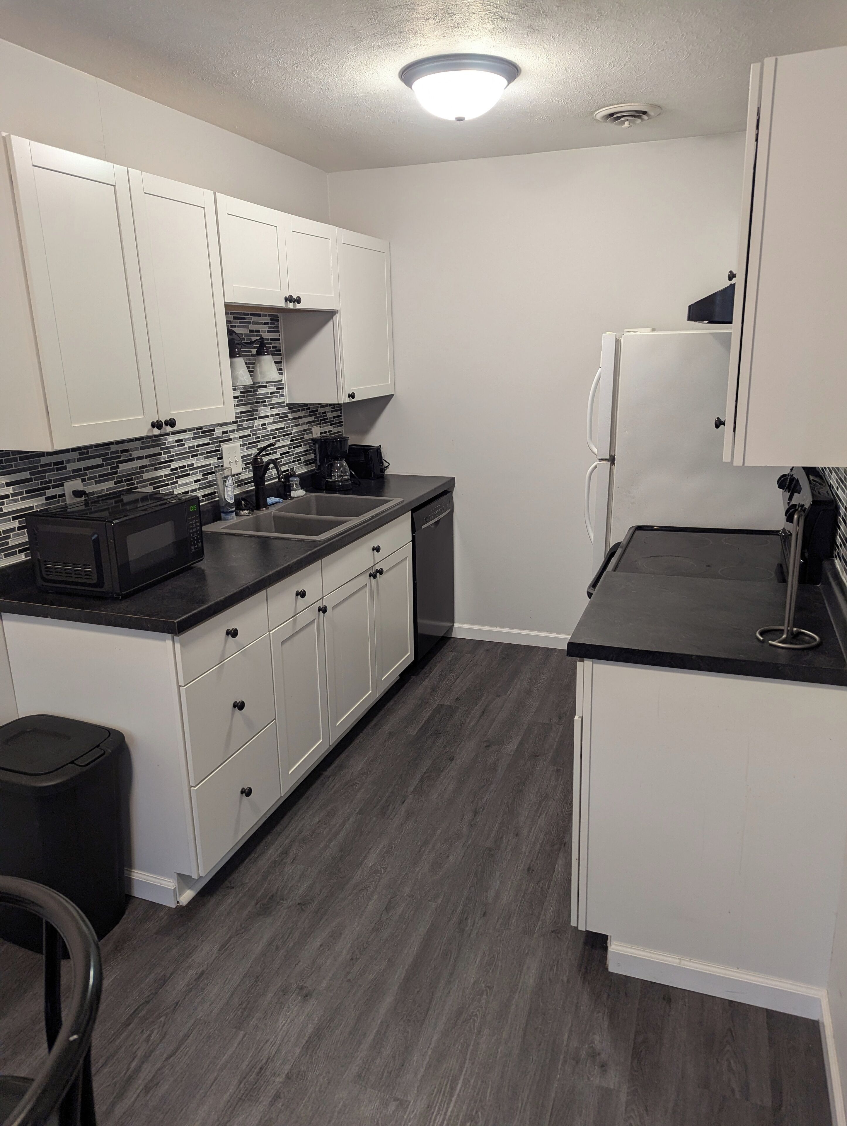 Cozy little upstairs apartment with 2 rooms, a full kitchen and a dedicated work station.