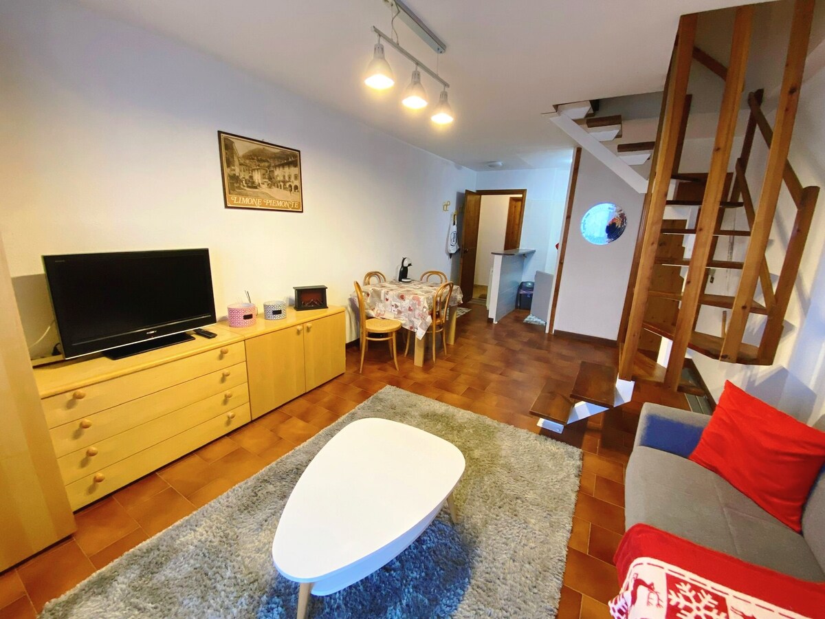 Relax in this peaceful and centrally-located place. Cozy mountain apartment in Limone Piemonte, ideal for 4 people. It consists of a double bedroom, bathroom, and living room with kitchenette, dining table and sofa bed. Perfect for short stays in 4 or long stays for 2. Equipped with all the necessary amenities, it is located in a quiet area, a short distance from both the center of the village and the ski resorts. Perfect for a relaxing or sporty vacation.