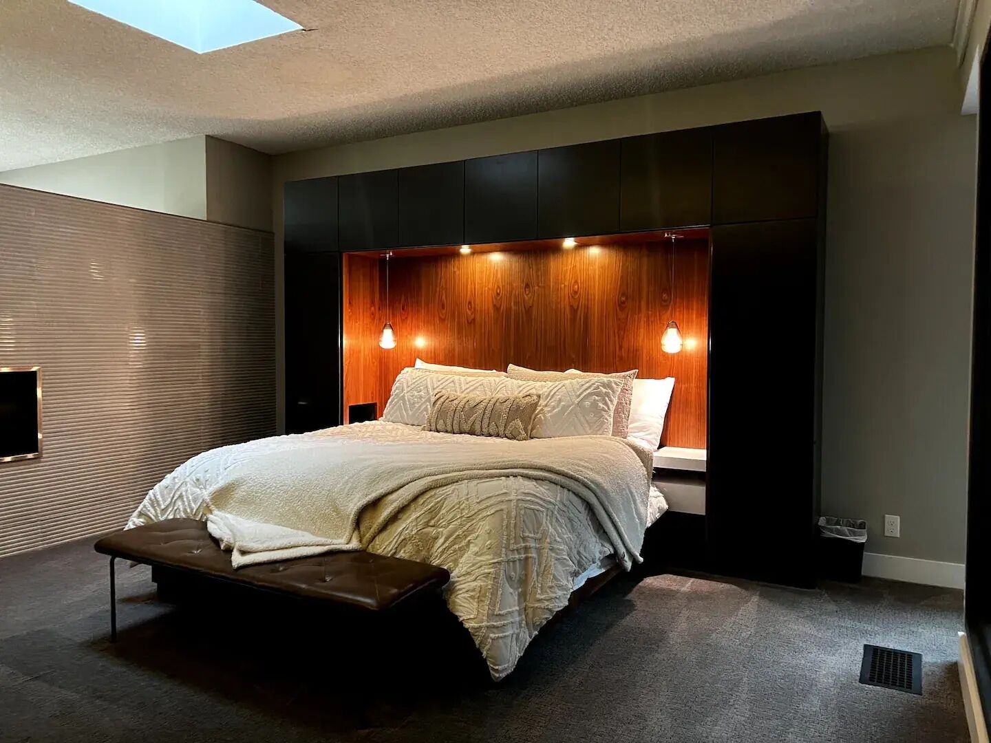 There is also a queen sized bed, closet with dresser, and bunches of storage. We have made this space incredibly efficient with more storage that you would normally ever see in a place this size! We are really great at making small spaces mighty! The over 9 foot tall ceilings and natural light also make this home feel spacious. We have light blocking curtains and shades on every window in the home making it easy to sleep in or sleep during the day if you have the night shift.