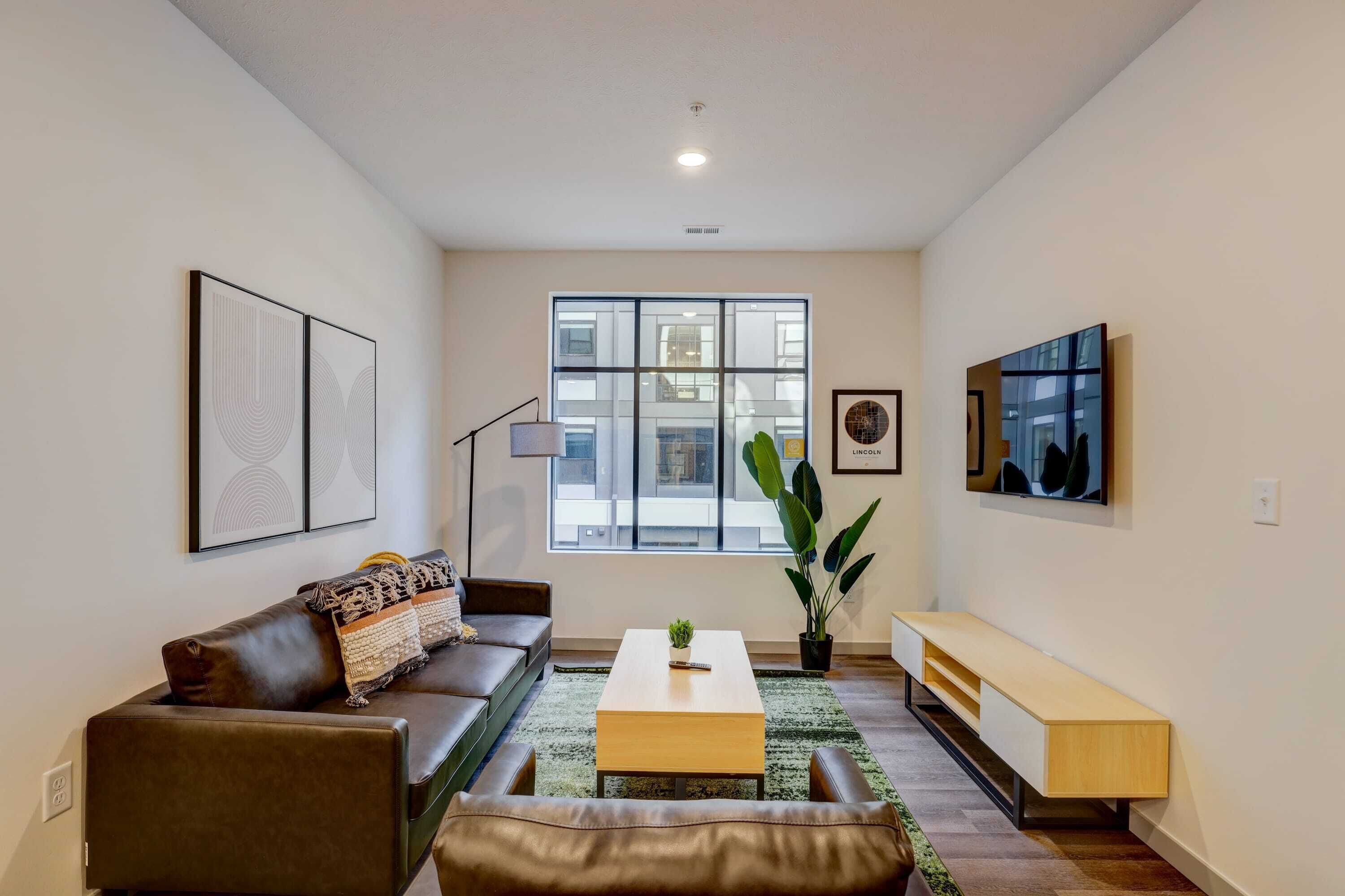 As soon as you step foot in this gorgeous apartment, you're greeted by the beautiful yet highly comfortable living area elegantly decorated to complement the fantastic Lincoln location.