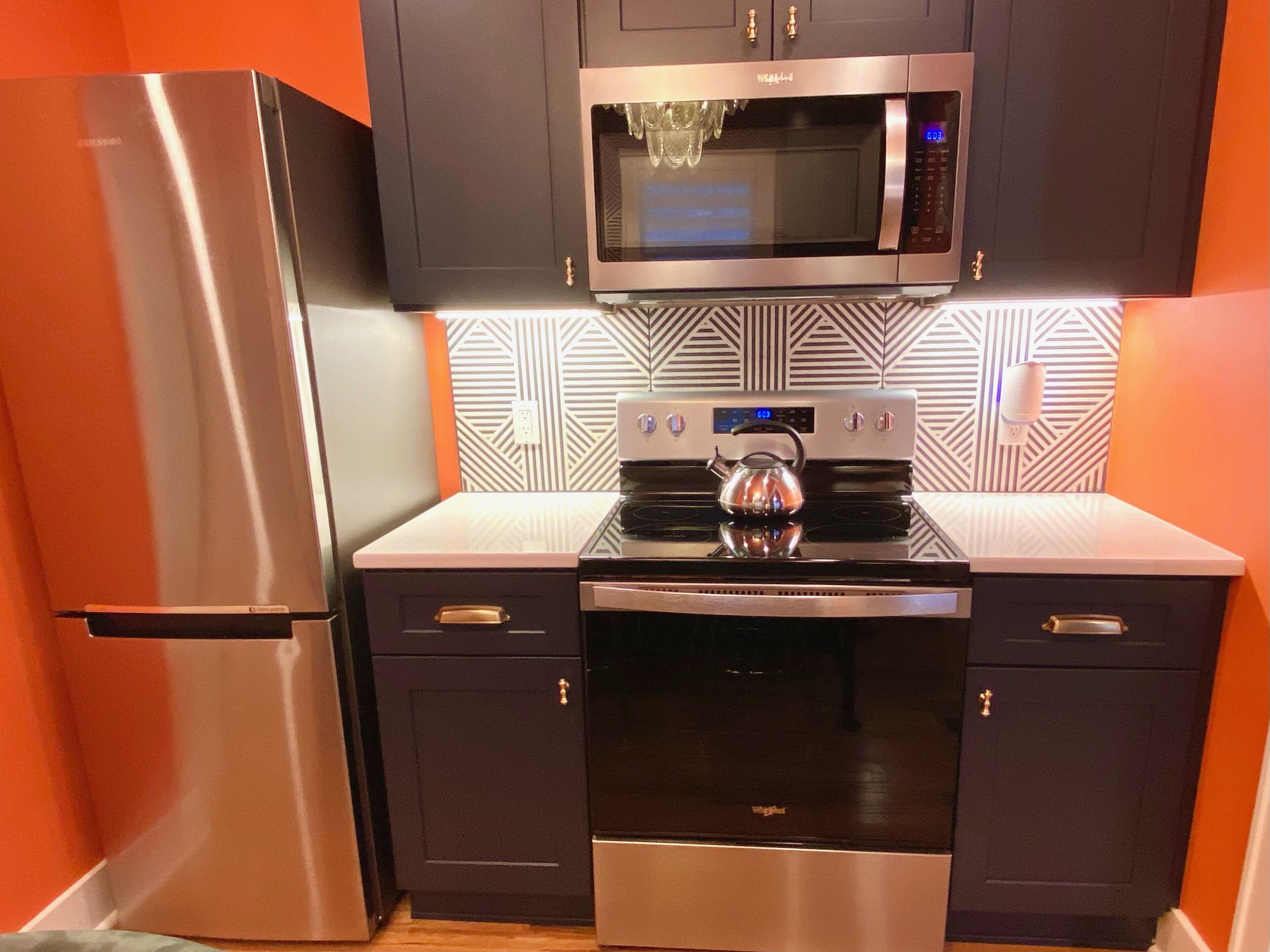 KITCHEN: Fridge, oven, 4-burner stovetop, microwave, drip coffee maker, toaster, cooking basics, dishware & flatware