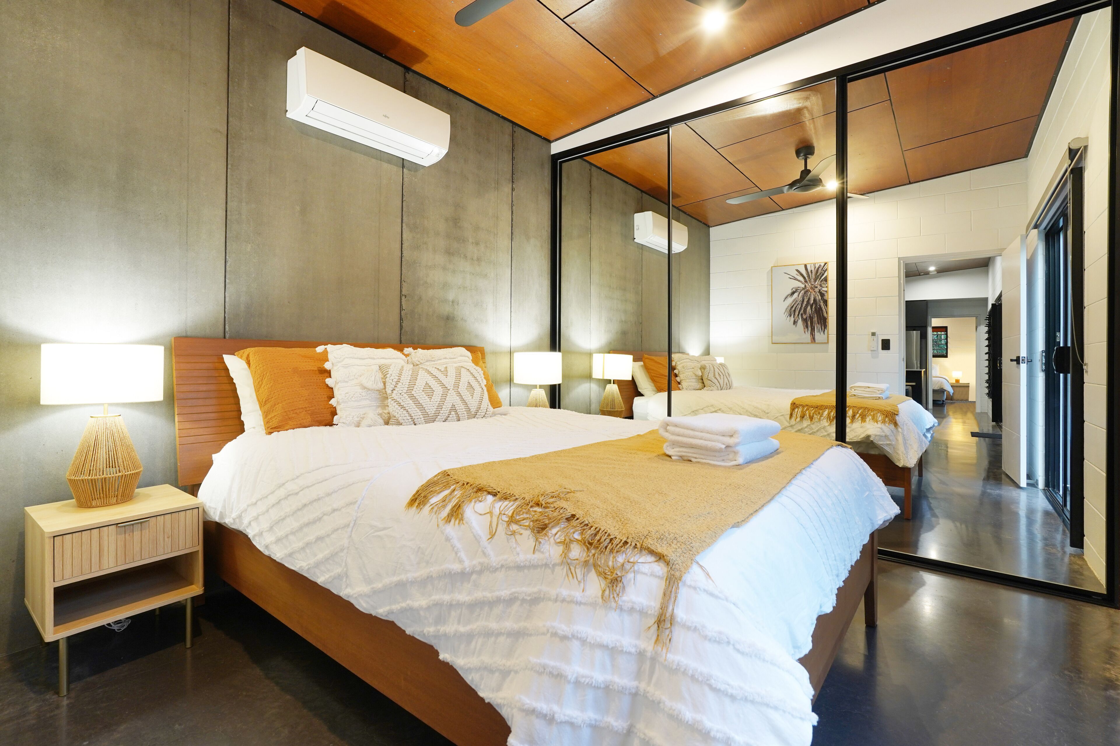Aircon, ceiling fan and portable fans available. Bedroom has external access to the pool area. Full use of remaining house spaces - excluding other bedrooms.