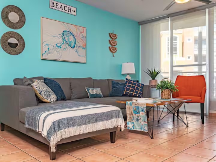 Costita Azul is an cozy apartment part of unique complex that is located front Beach at Loiza, Puerto Rico. You will enjoy the best of both worlds beach access and two pools private access, one of them with a stunning view to the Atlantic Ocean.
