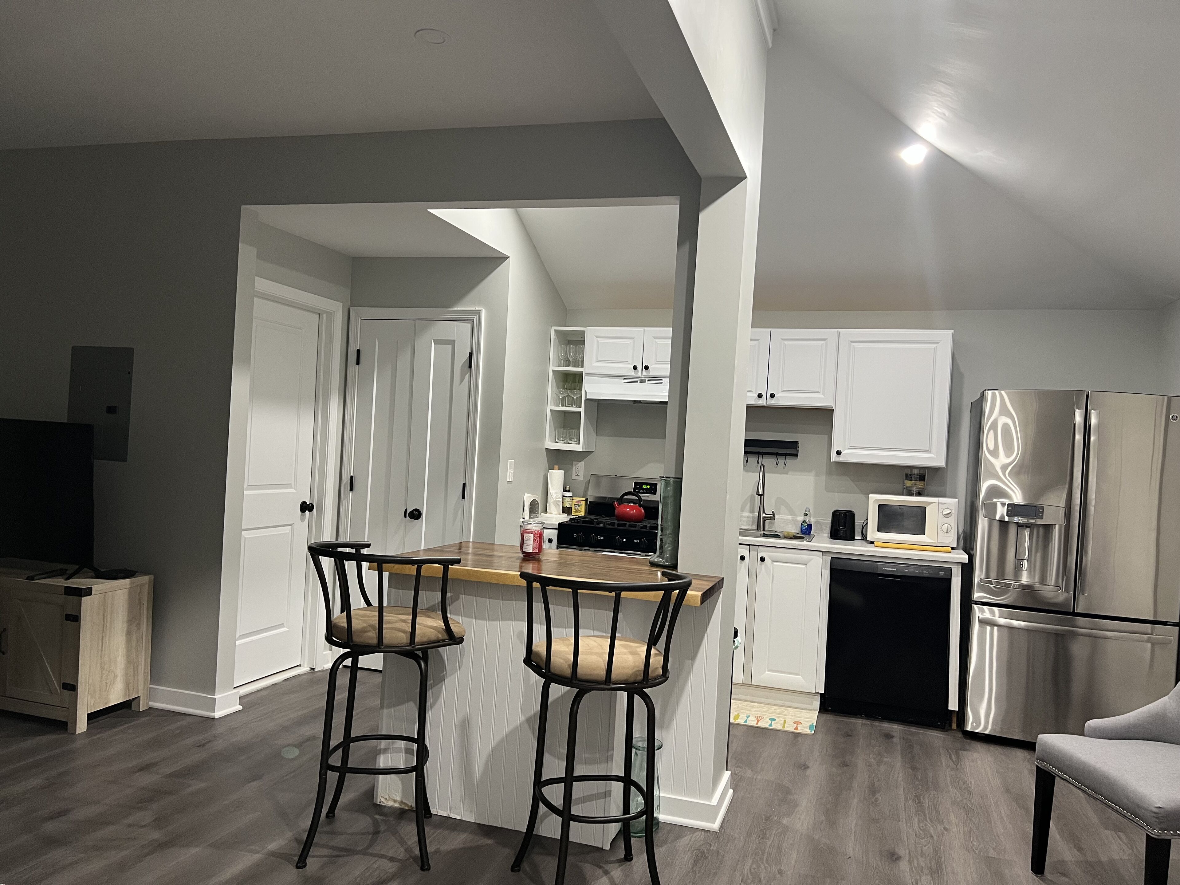 Welcome to Tranquil Waters Hideaway, a peaceful and family-friendly retreat perfect for couples with young children. Nestled along a beautiful lake, this private 1,000 sq. ft. suite offers the perfect blend of relaxation and adventure. This space features a complete open-concept, including bedroom sections. With its own separate entrance and dedicated parking spot, this inviting space provides a cozy yet spacious getaway just minutes from the vibrant Long Branch beach, and local attractions.