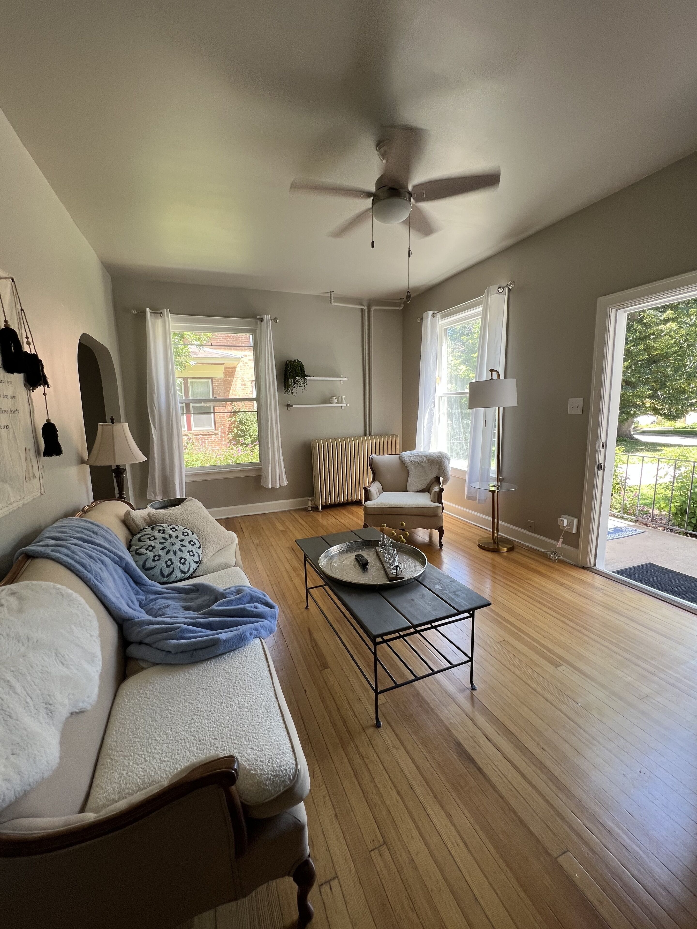 This is a great launching pad for your time in Longmont. Original hardwood floors and large sunny windows makes your private bathroom your own relaxing oasis. Direct access to your space from the backyard gives you privacy from our family living in the front of the house. There is plenty of parking right off the back alley, then come in through the spacious fenced backyard. Combination lock let’s you in easily whatever time you arrive.