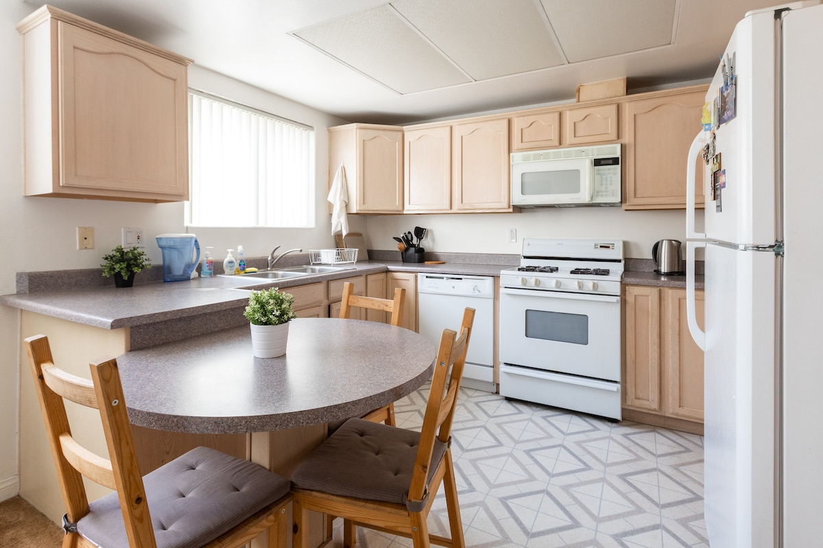 Shared living room, kitchen, and dining area, perfect for relaxing or cooking up your favorite meal.