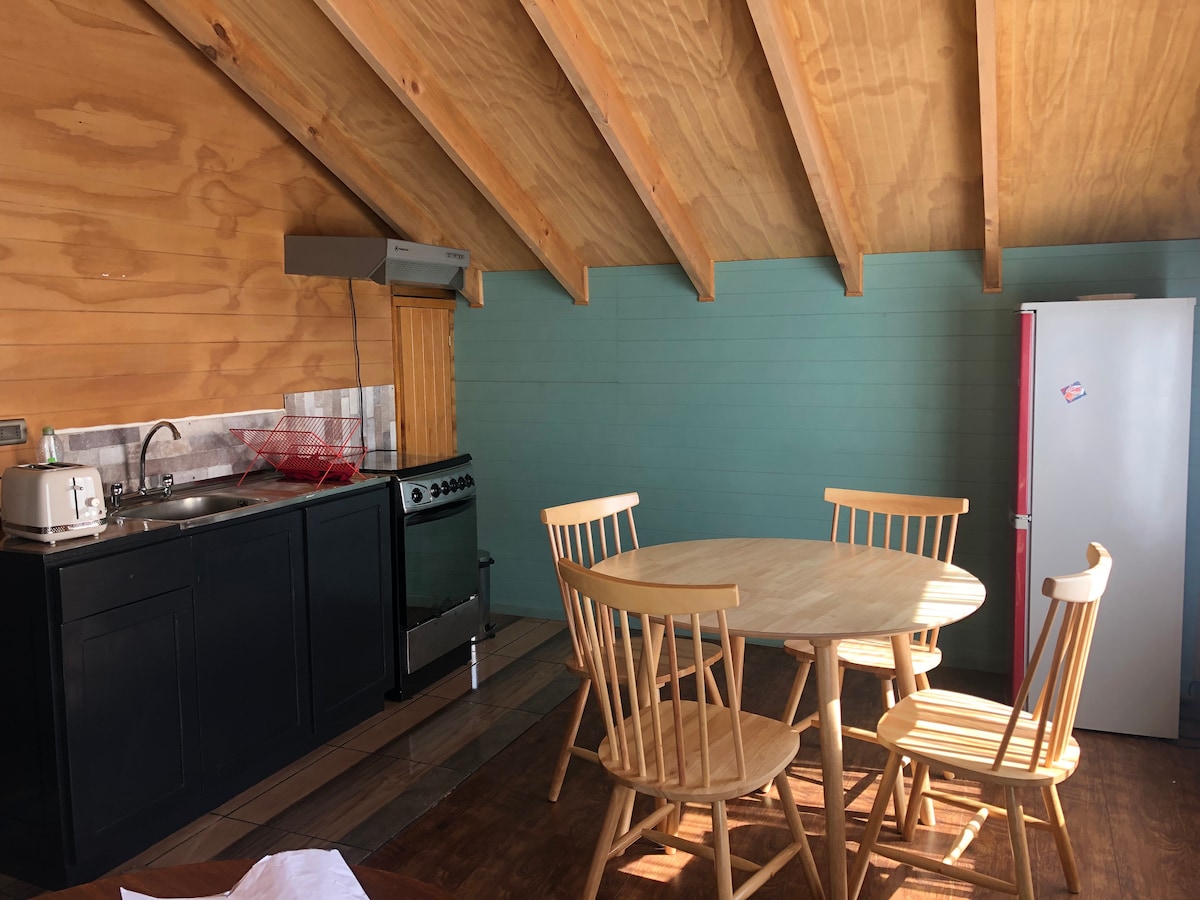 Enjoy new experiences, we have 4 cabins of 1 room equipped up to 6 people, with kitchen, heating, and everything you need to make your stay an unforgettable experience, also as an additional service and at no cost we have bicycles and kayaks, outside the T-85 route there is 5 km of safe bicycle path to the Nilahue Falls and for Kayak at 400 meters there is a small river where you can enjoy and even fish. Plenty of forest, ideal for hiking.
