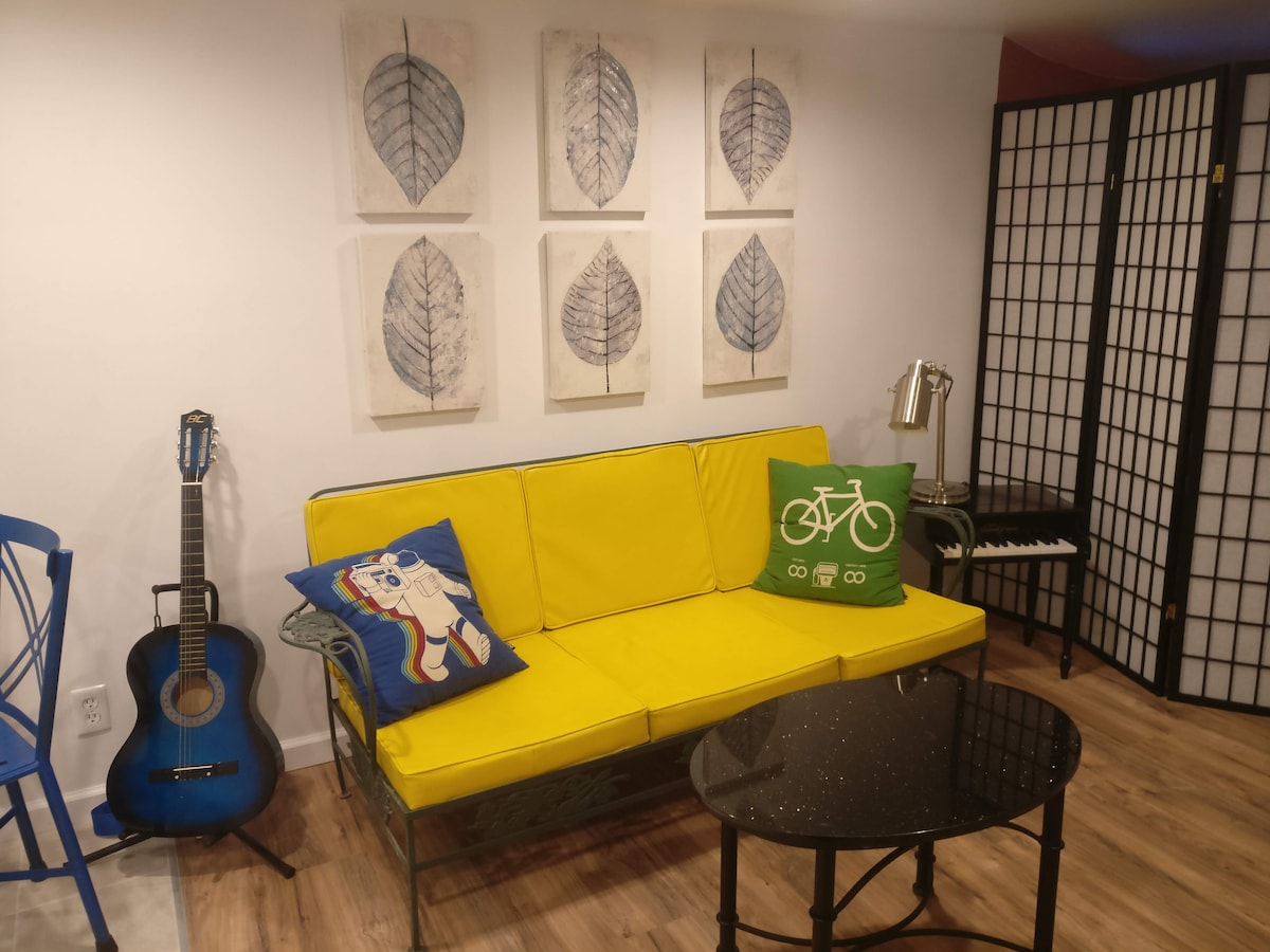 Hi, this basement studio apartment is in our Victorian building about 1 mile from the city center and also about a mile from the Riverfront. Popular NuLu neighborhood is around the corner and The Highlands 15 min walk away. Basement is about 6 ft 7 inch so if you over 6 ft it may feel uncomfortable. There's only on window but artificial lighting is plentiful. Kitchen is rudimentary with small fridge and inductive hotplate and it also lacks proper closet, just clothing rack.