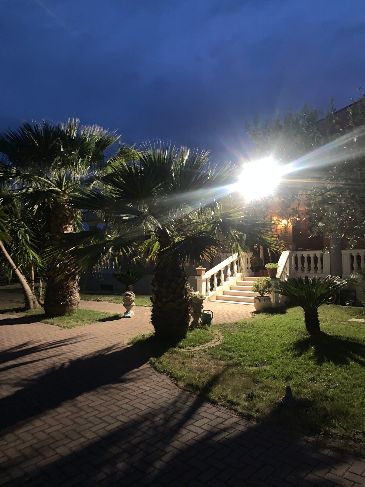 my apartment is located on the outskirts of Lucera, very close to the Roman amphitheater, called "Immersed in nature" because it is the upper floor of an independent villa with a large garden, where we live below. It consists of a large entrance, 2 bedrooms, one with bathroom in the room and the other with adjoining bathroom, including linen x bed and x bathroom, plus guarded parking in the fence. We adapt to every need and need, including being able to have dinner/breakfast with us.