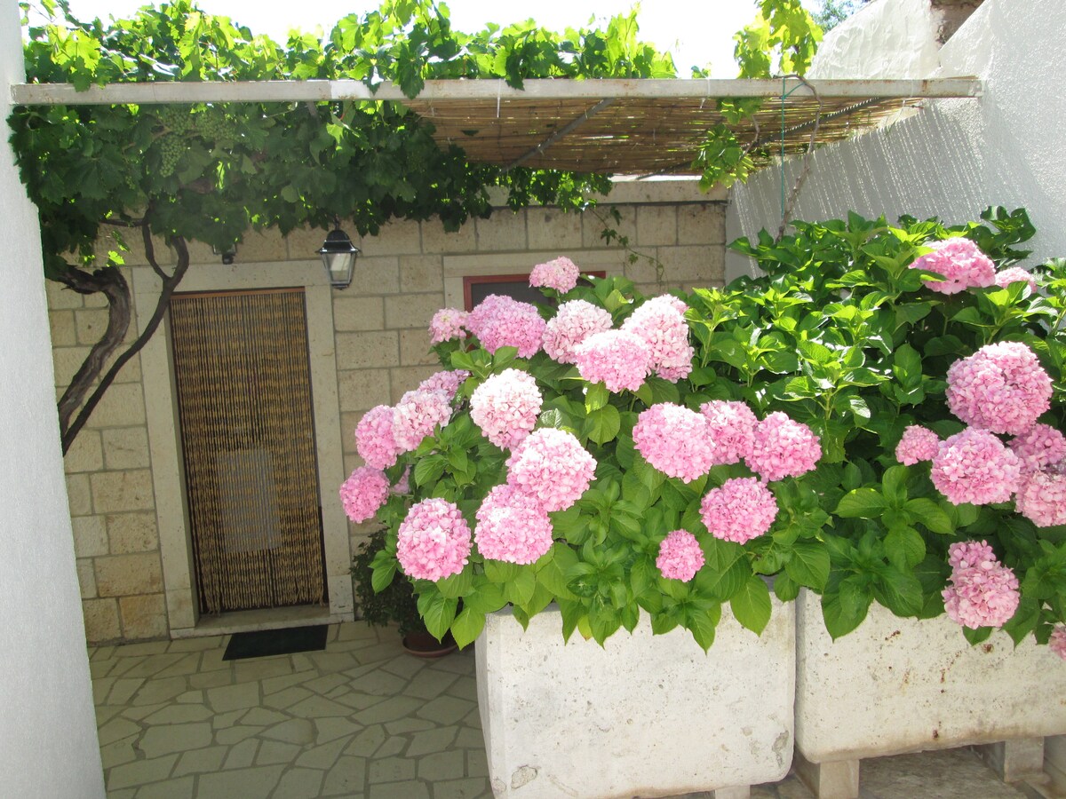 The studio is air-conditioned, with Sat Tv and free Wifi, located on the top floor of a dalmatian stone house with an amazing roof terrace with a view to the village and the sea.