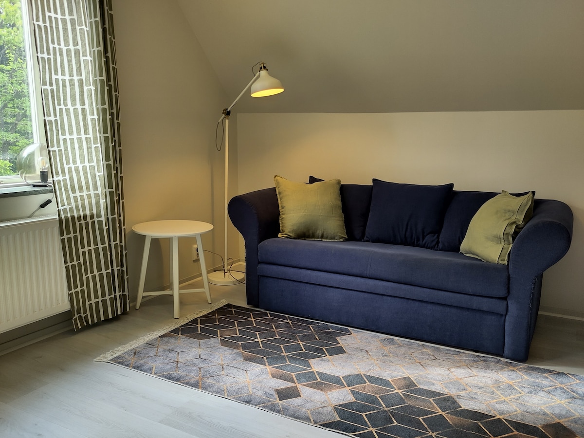 Well-planned apartment with a kitchen. A big living room with sofa bed and a nice desk. Adjacent to the living room there is a balcony with furniture for 2 people.