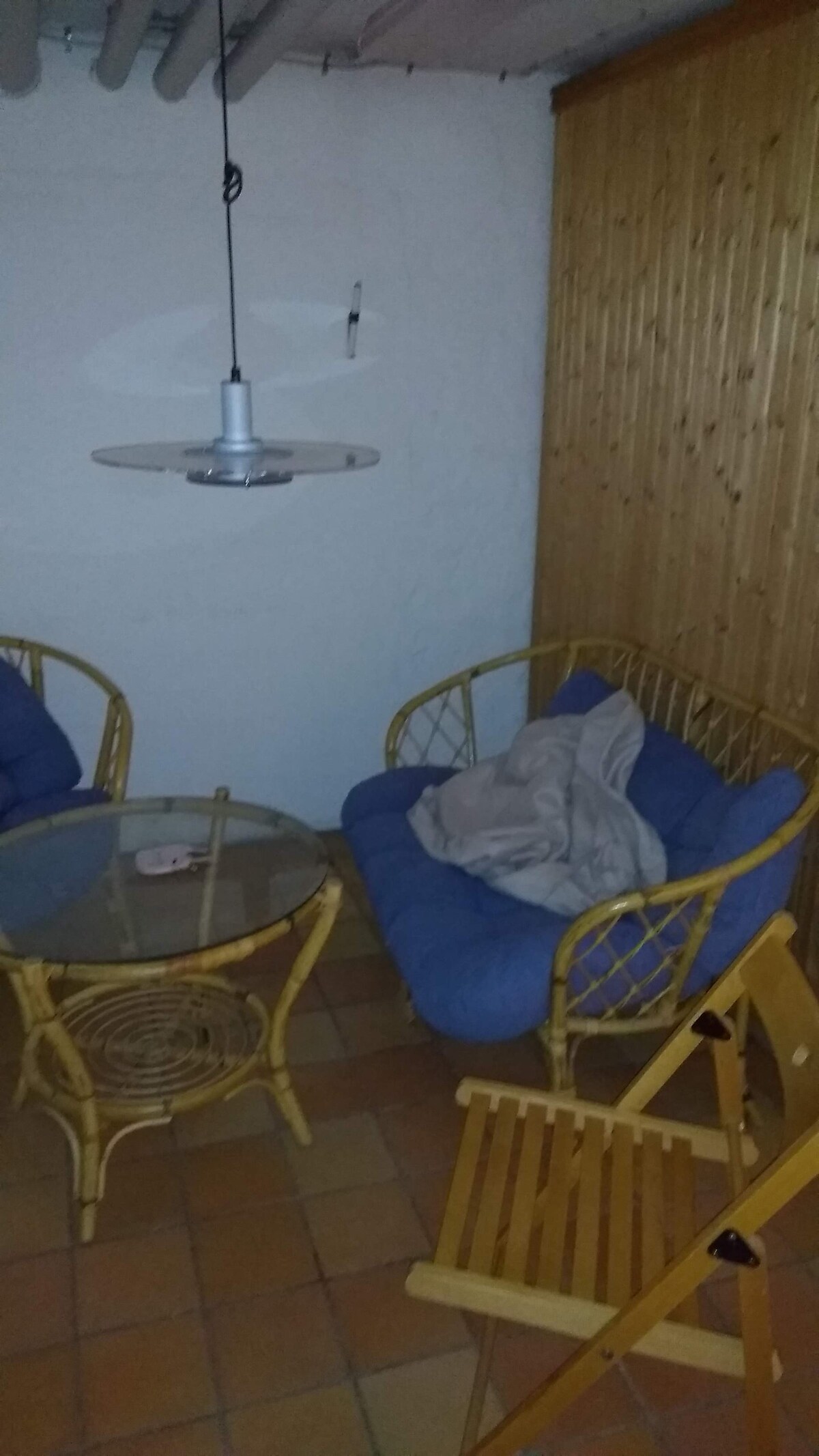 The apartment has a room with sofa and TV, dining table and real kitchen. In the bathroom there are wc, shower and washing machine with dryer. In a loft there are two 80 cm wide beds. A private patio is available with sun from morning to night.