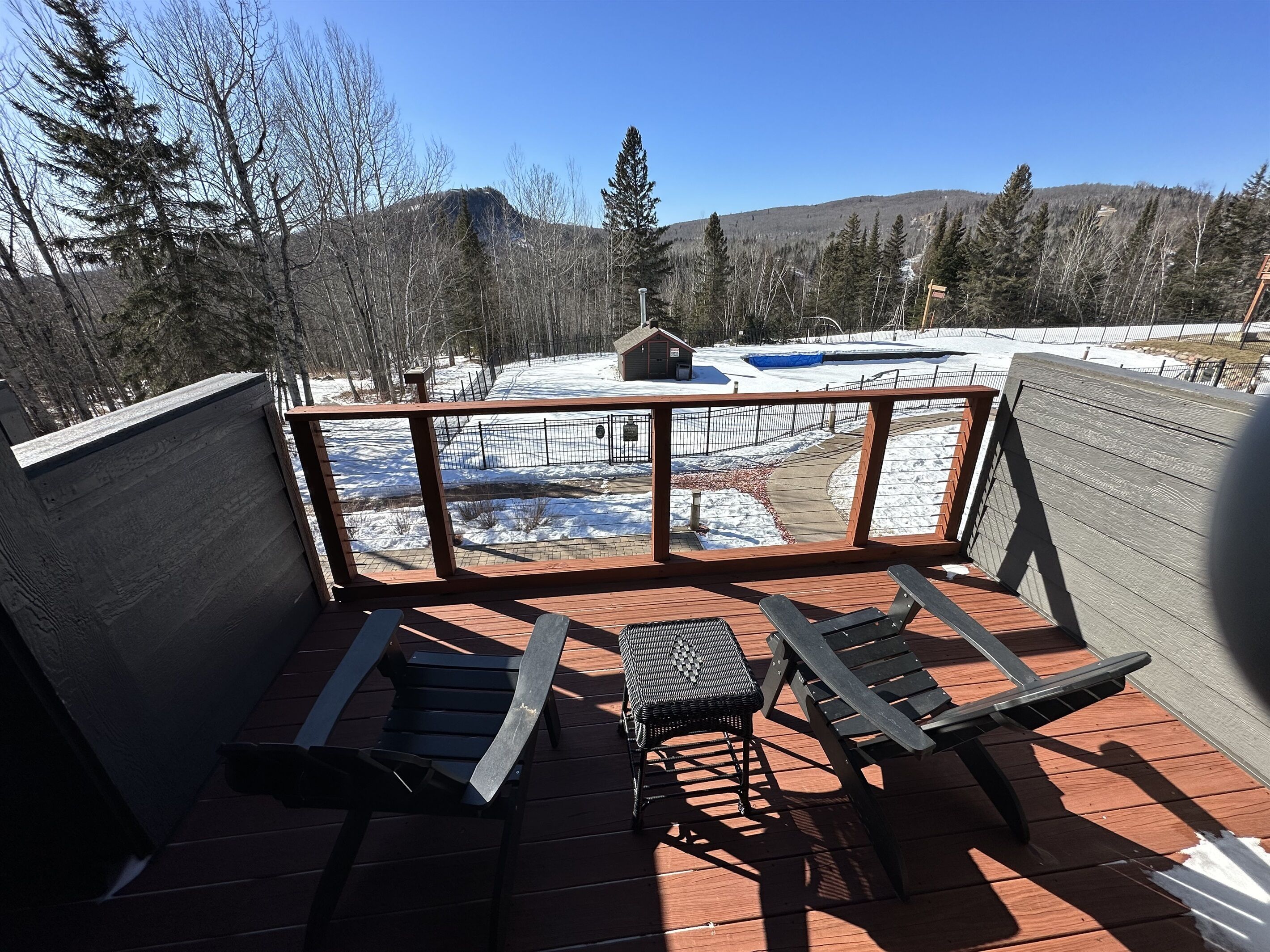 Our inviting studio at Caribou Highlands Resort features a plush queen-size bed, a renovated full bathroom, a deluxe jacuzzi tub for two, and a well-equipped kitchenette with a mini-fridge. Step onto the private deck to admire sweeping views of Eagle Mountain and Lake Superior or catch glimpses of the Gondola traversing between peaks.