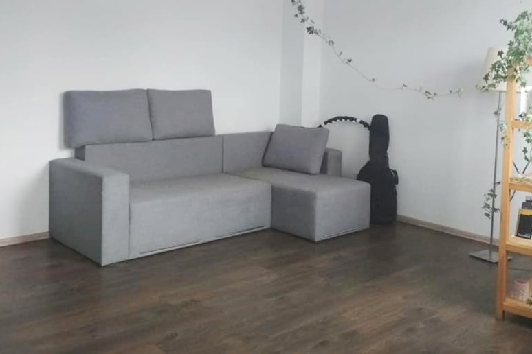 A cozy room with a double sofa is waiting for guests. You’re welcome to use my guitar, as well as the internet, kitchen, bathroom, and toilet, of course! :)