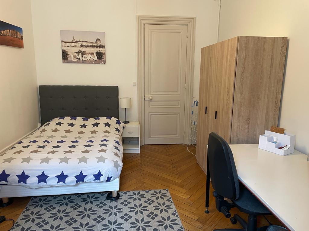 Discover this cozy 10 m² room. Located in a beautiful 148 m² apartment in Villeurbanne on the top floor of a modern residence, this fully equipped room with direct access to Metro Line A and nearby shops will have everything to charm you. This room consists of a sleeping area and a workspace. By choosing coliving, you're choosing peace of mind.