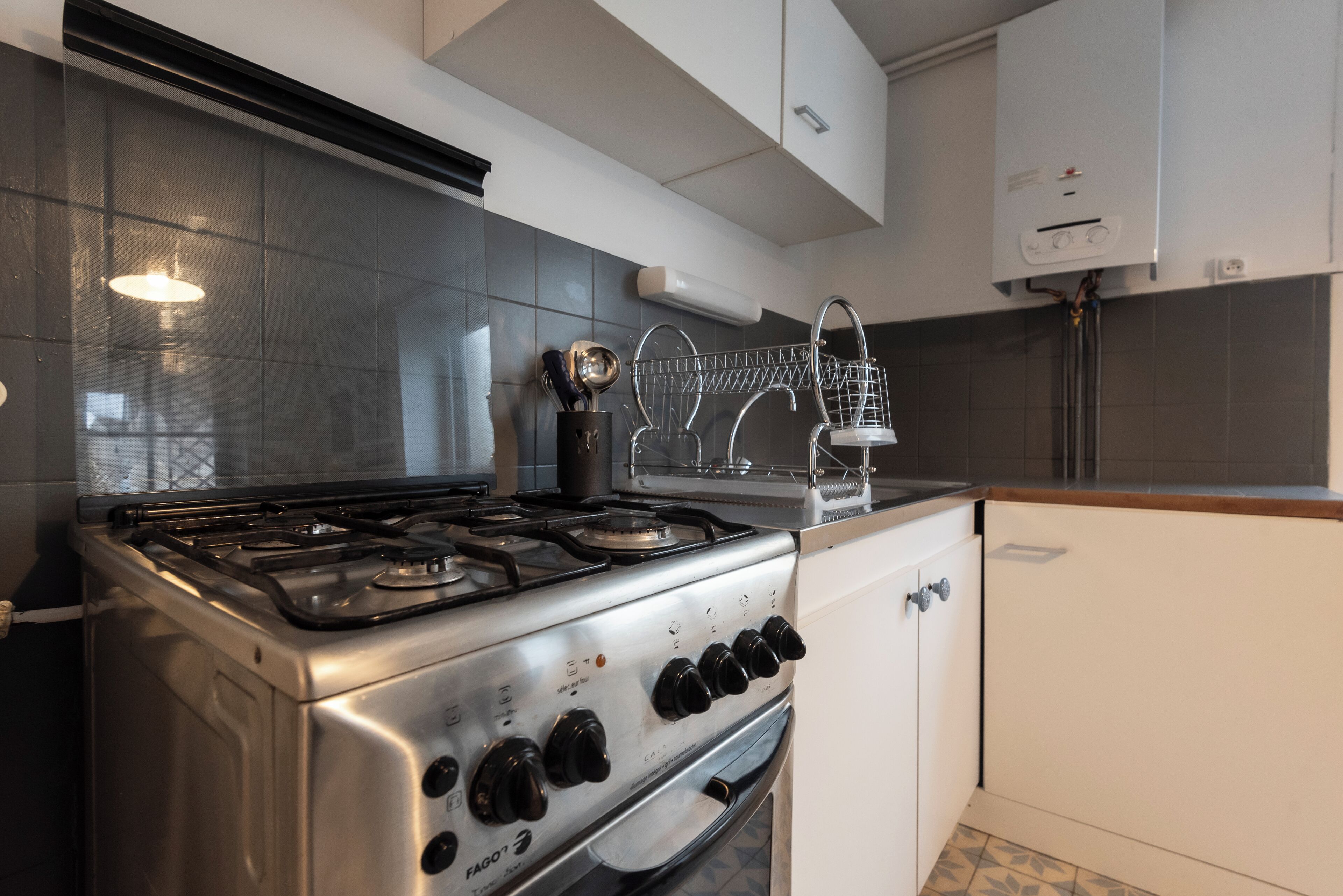 The kitchenette includes cuttlery up to 8 people, dishwasher, mini oven, french press, kettle, and everything you need to cook !