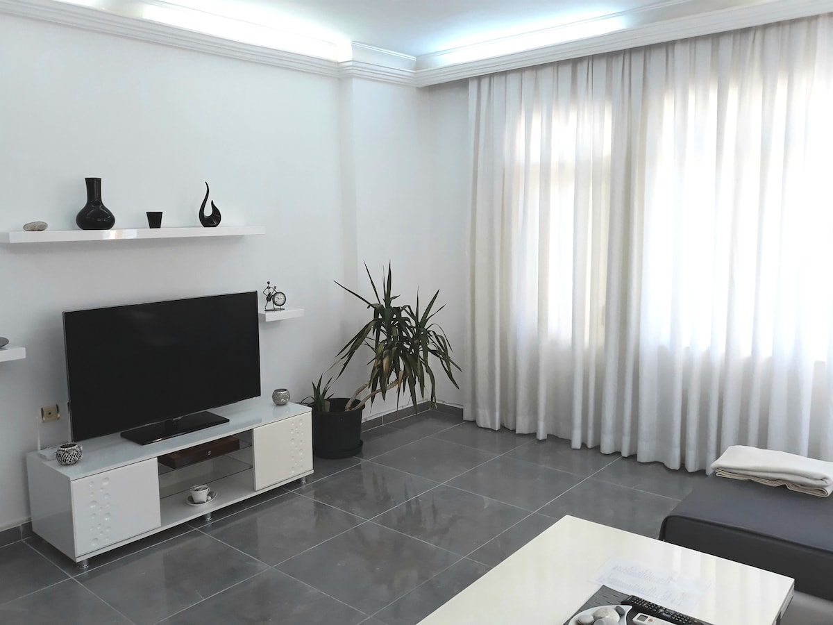 In 2013 and 2022 newly furnished approx. 100 sqm apartment with Samsung air conditioners cold/hot. It sits on the fifth floor of a five-story house with 10 apartments. There are two balconies accessible via three doors. Beautiful view of the mountains.