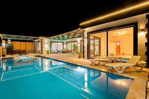 Offering a garden, Kalkanda Hamam Sauna ve Jakuzili Villa Golf offers accommodations in Kaş. This property offers access to a terrace, free private parking, and free Wifi. The apartment has a seasonal outdoor pool and an indoor pool. The air-conditioned apartment consists of 2 bedrooms, a living room, a fully equipped kitchen with an oven, and 2 bathrooms with a hot tub and a hair dryer. Towels and bed linen are featured in the apartment. The accommodation is non-smoking. Lycian Rock Cemetery is 25 miles from the apartment, while Saklikent National Park is 12 miles away. The nearest airport is Kastellorizo, 31 miles from Kalkanda Hamam Sauna ve Jakuzili Villa Golf, and the property offers a paid airport shuttle service.