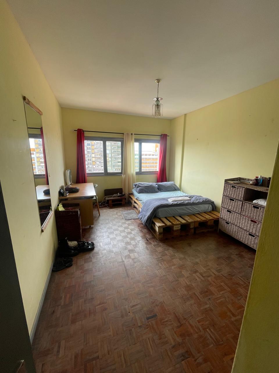 This is a bedroom with a double-sized bed. The bathroom is shared with one person. 3-bedroom Shared apt in the Maputo City Center, with a walking distance from everyday services you might need. Your life couldn't be any easier.