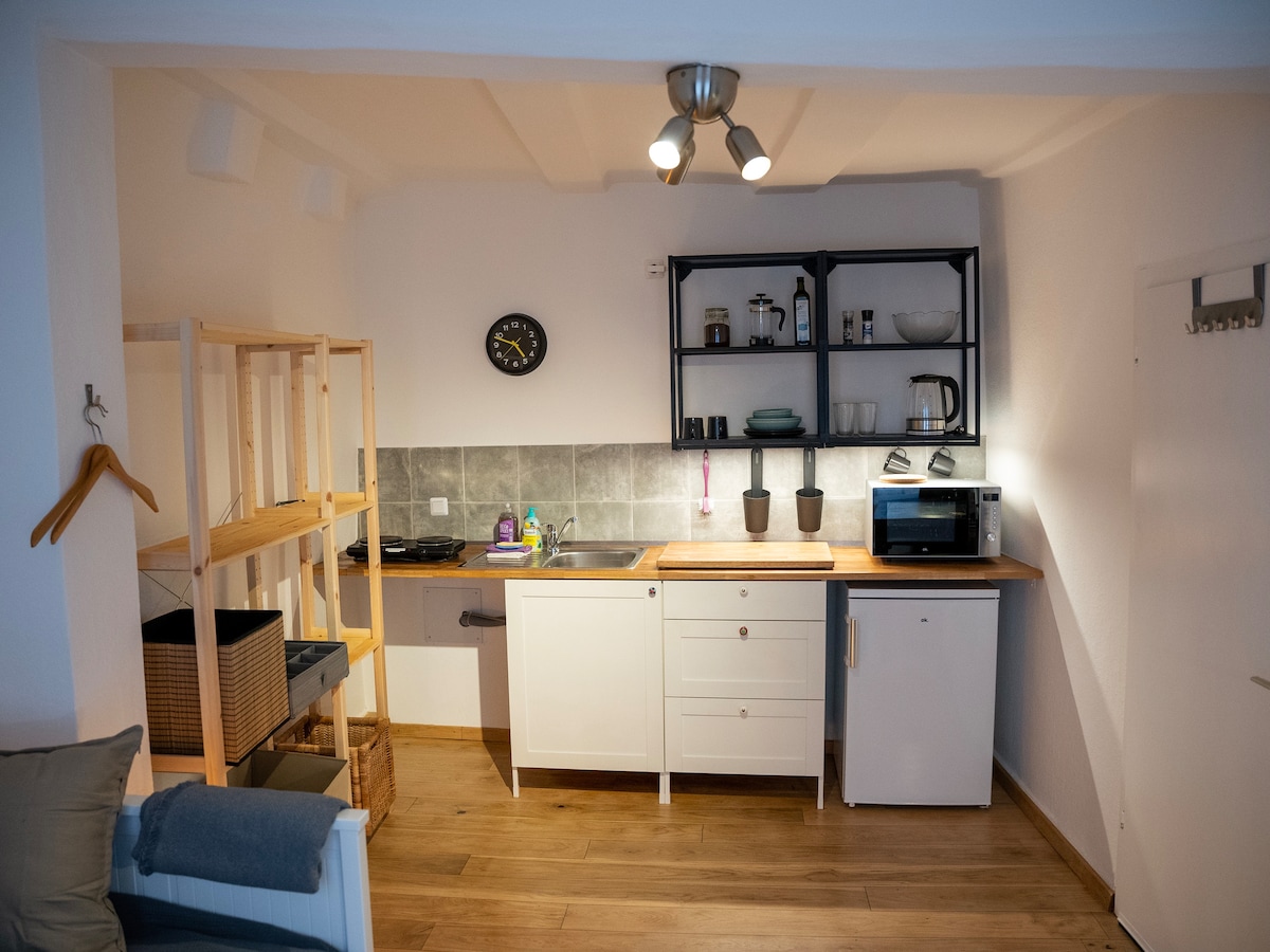 - Small kitchen (see pictures) incl. microwave/oven & fridge