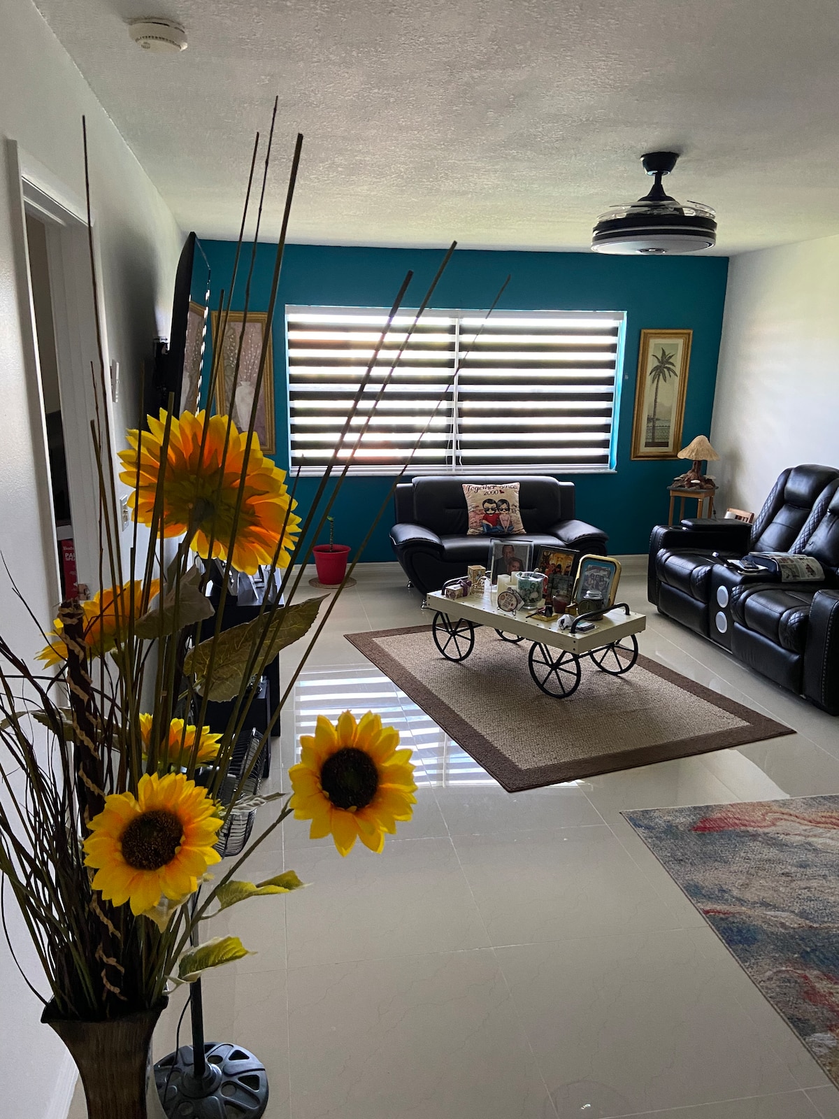 Enjoy a piece of luxury living in this peaceful 1 bedroom w/ office. This gem is centrally located to all your shopping and entertainment sites and is also located directly behind one of the top rated hospitals in south FL for cardiac care. There is an office dedicated for work with a desk available as well as 3 TVS and a portable Speaker that allows for entertainment. There is a pool directly near the apartment for lounging and quick dips as well as a fully equipped gym for those morning laps.