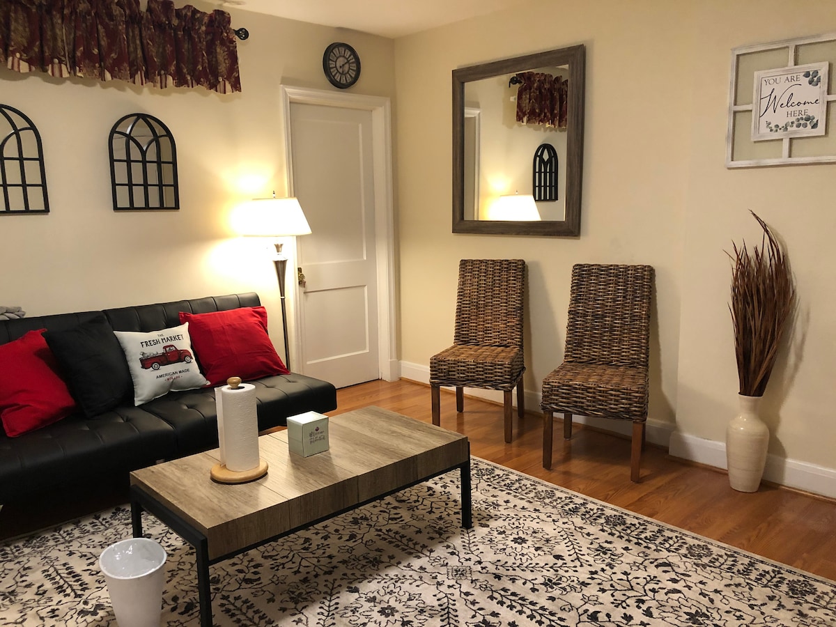 Brand new roomy 1 BR w/ separate living room kitchen area separated by garage and breezeway in beautiful, safe waterfront community. Keyless entry for easy access. Shared fenced backyard. Queen bed plus pullout sofa for extra guest. Dedicated work space with Wi-Fi, Blackout curtains, and noise machine. Peaceful and centrally located only 20 minutes to Annapolis, and less than an hour to Baltimore and DC.
