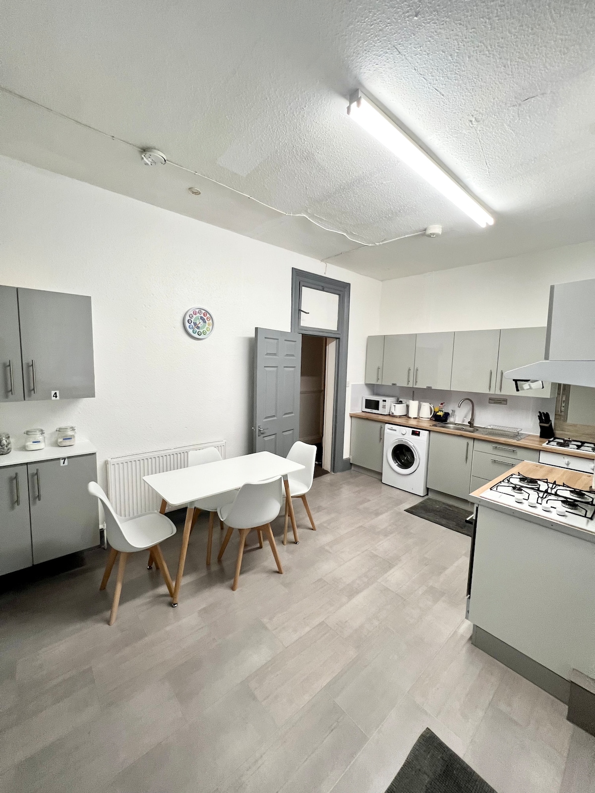 It is a six bedroom apartment with two bathrooms and a very large fully equipped kitchen with two cookers, two washing machines and two sinks.