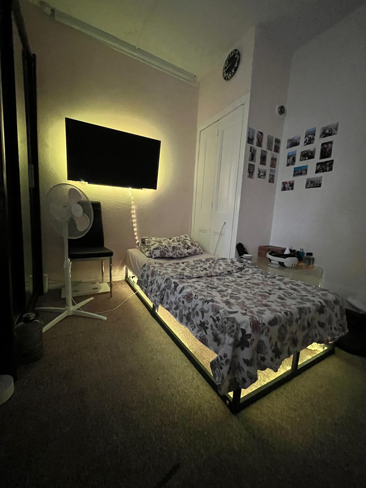 +Space efficient, single wall bed ready for your arrival