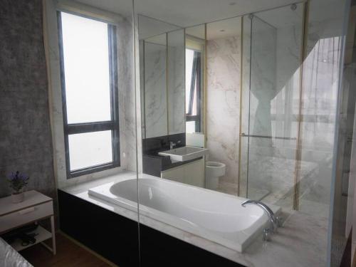 One room apartment, equipped with smart home system, with elegant, magnificent design perfect for couple seeking romantic night, great family time or friends looking for a fun get-together. Located on 37th floor, the panoramic view is a once in a lifetime le fait whether during dusk or dawn, seamless for a serene, expressive conversation or tranquil meditation.