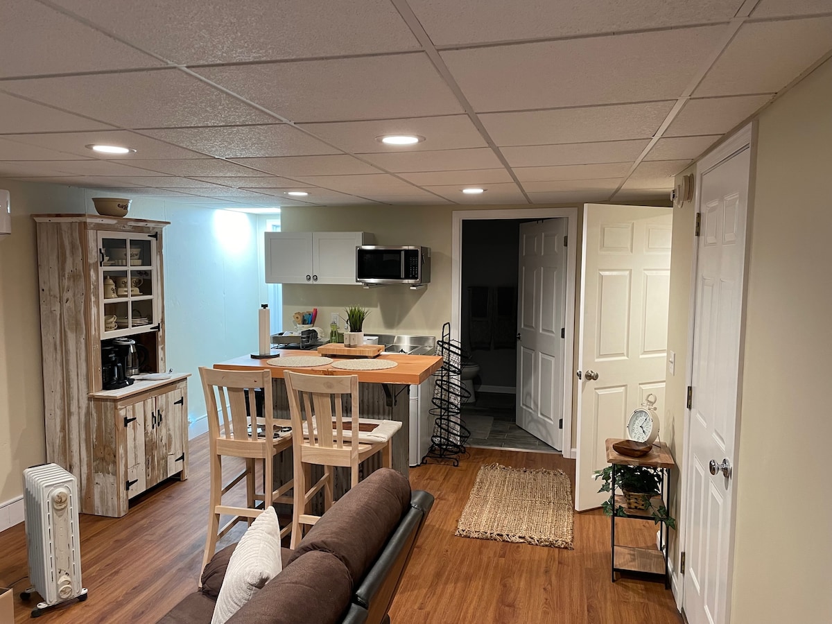 Relax by the entrance to Massanutten in this spacious 1,100 sq. foot lower level apartment. Head up the mountain to the slopes and golf course or out the gate to the waterpark and nearby Shenandoah National Park. The owner lives upstairs and as an event planner, is a detailed attentive hostess. Have extra guests? There are two more rooms in the owners space that the owner might open up and go camp for the night so you can enjoy more of the home with additional friends!