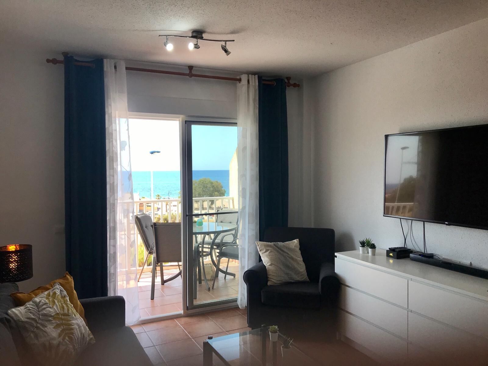 With a view of the sea, the holiday apartment 'Apartment in Bolnuevo' is perfect for a relaxing holiday with your loved ones. The 58 m² holiday apartment consists of a living room and dining area, a well-equipped kitchen (including cafetiere), 2 bedrooms and 1 bathroom. In addition, a folding bed can be set up, so the accommodation offers space for 5 people. Additional amenities include Wi-Fi (suitable for video calls), air conditioning, a washing machine as well as a TV. There is no A/C in the bedrooms but there are large ceiling fans. There are also 4 portable heaters and a hot air fan. In the cupboard by the stairs you can find beach chairs, beach mats and children's toys for the beach. A baby cot and a high chair are also available.
