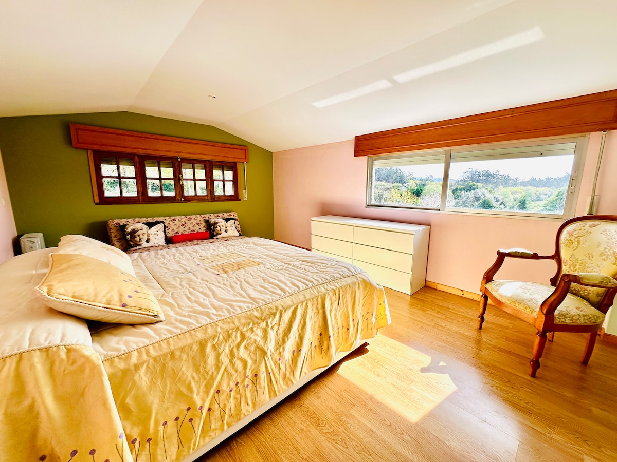 A 3-minute walk to As Seixas river beach, on the Umia River. 15 minutes from the beaches of Illa de Arousa and Cambados, in the heart of Valle del Salnés.