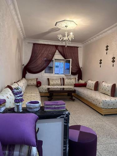 18 miles from Volubilis in Meknès, logement exceptionnel réservé aux familles features accommodations with access to a hot tub. Free Wifi is available throughout the property and private parking is available on site. Guests can use a terrace. Featuring a balcony and city views, the spacious apartment includes 2 bedrooms, 2 living rooms, flat-screen TV, an equipped kitchen, and 2 bathrooms with a hot tub. Fès–Saïs Airport is 44 miles from the property.