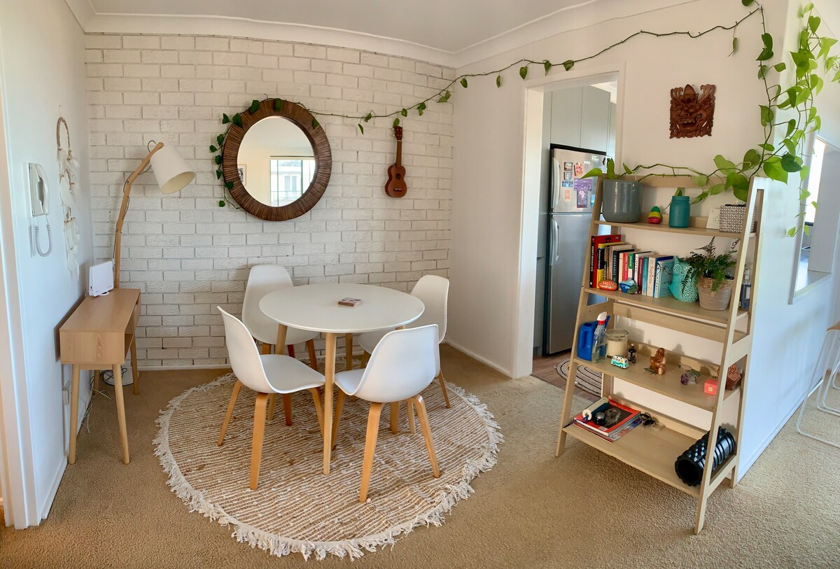 This old-school apartment is a longtime resident of Merewether’s barefoot lifestyle, giving off beach shack vibes with the sand and surf on its doorstep. The no-frills open-plan dining and lounge area flows to a private balcony with peeking ocean views, creating a beautiful transition with the outdoors.