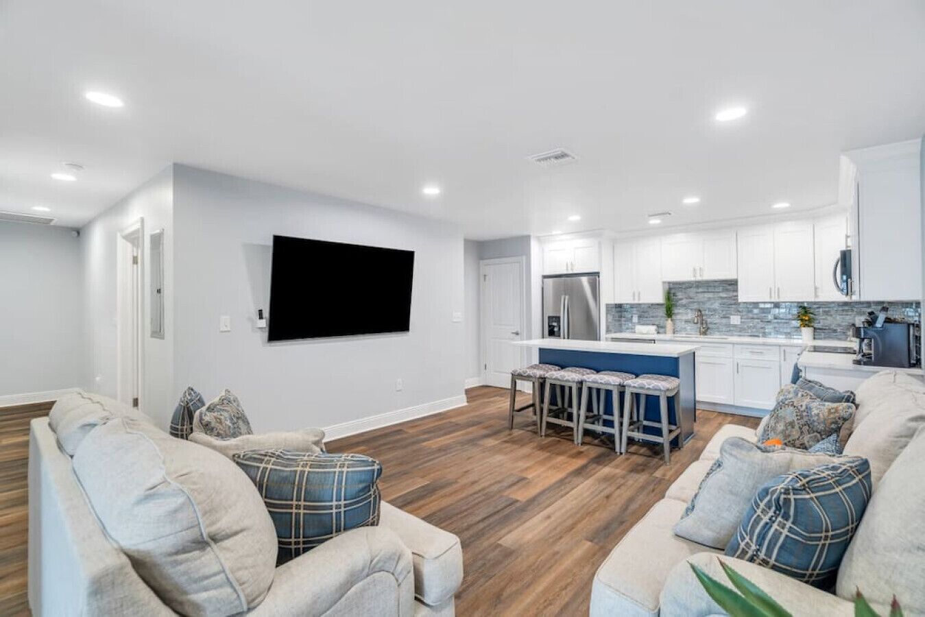 - "There was a tv in all rooms. The place was immaculate! Everything was only a 15 minute ride so the location was great. There are two rooms that share a restroom in the hallway but the other rooms have an ensuite. The place had everything we needed including a nice washer/dryer combo. We enjoyed the snacks! " - "The property was conveniently located in a safe neighborhood. We loved everything about it!" - "This place was perfect for our large group. Very clean and comfortable. Six bathrooms were nice to have when getting ready. Great location. Highly recommend."