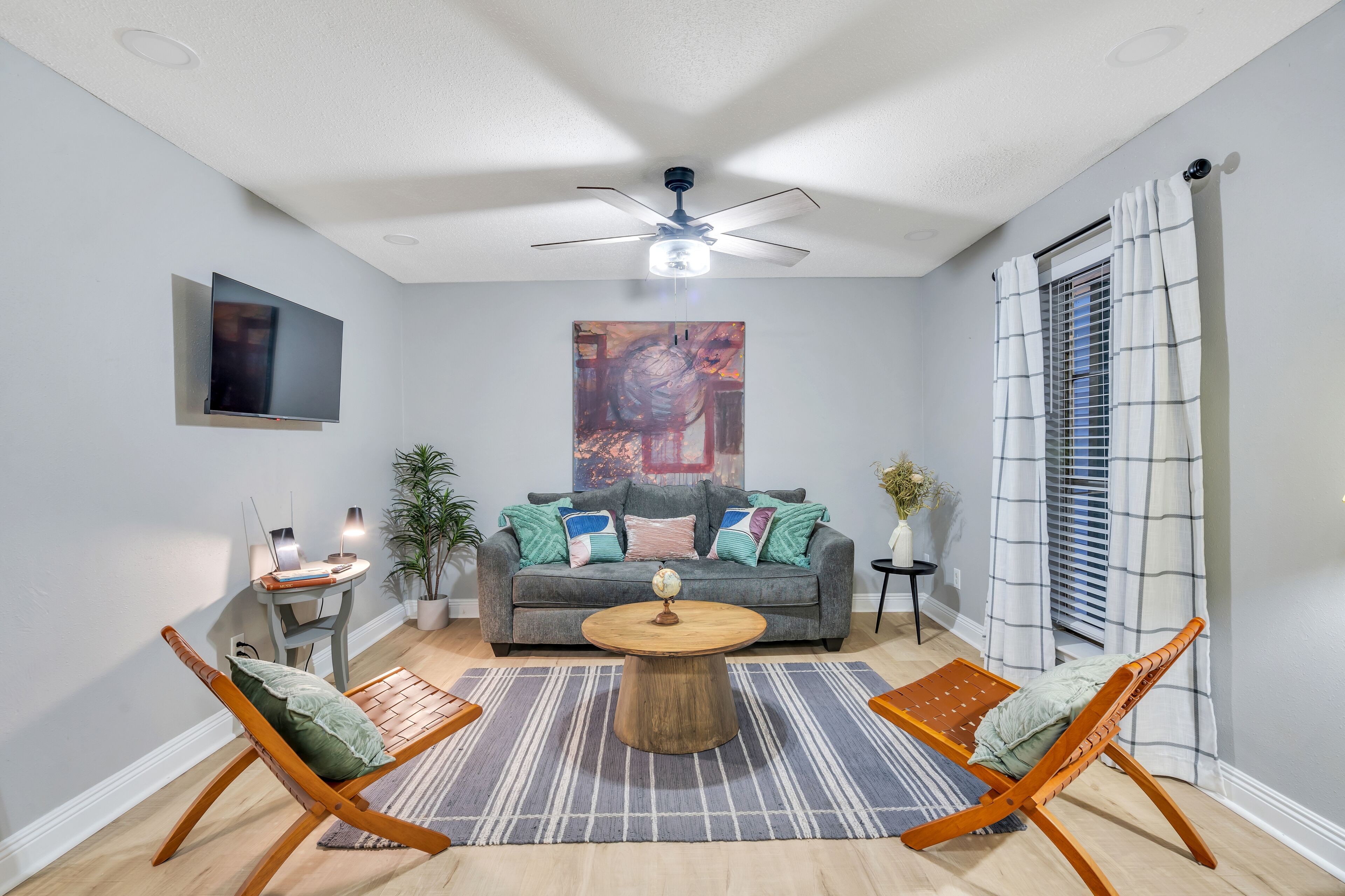 - "Enjoyed our stay here. Kitchen well appointed, beds/linens comfortable. Nice clean neighborhood and felt safe. Walked to quaint grocery market, Walgreens, pizza place and Mexican restaurant. Appreciated designated parking spot and small quiet pool area." - "We had a great experience with this property and the owner. The owner was very responsive to any concerns we had. The property was very clean and orderly. The only thing I’d consider is the noise on the road could be a little loud and someone in the building smoked which seeped through the HVAC system or windows. The property manager brought Febreeze when we brought it to their attention but it was a constant smell that you couldn’t really get rid of regardless. Completely out of the owners control and they we’re very helpful to try to remedy the situation. Would stay again."