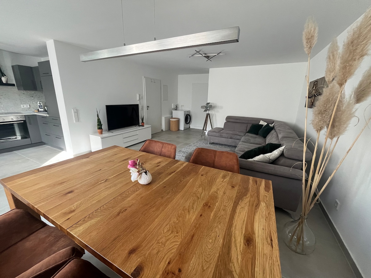 The apartment is spacious and well lit offers maximum comfort and modern style. Perfectly located, a few minutes walk to the famous outlet shops, restaurants and cafes of Metzingen. Ideal for business travelers, shopping lovers or for relaxing holidays.