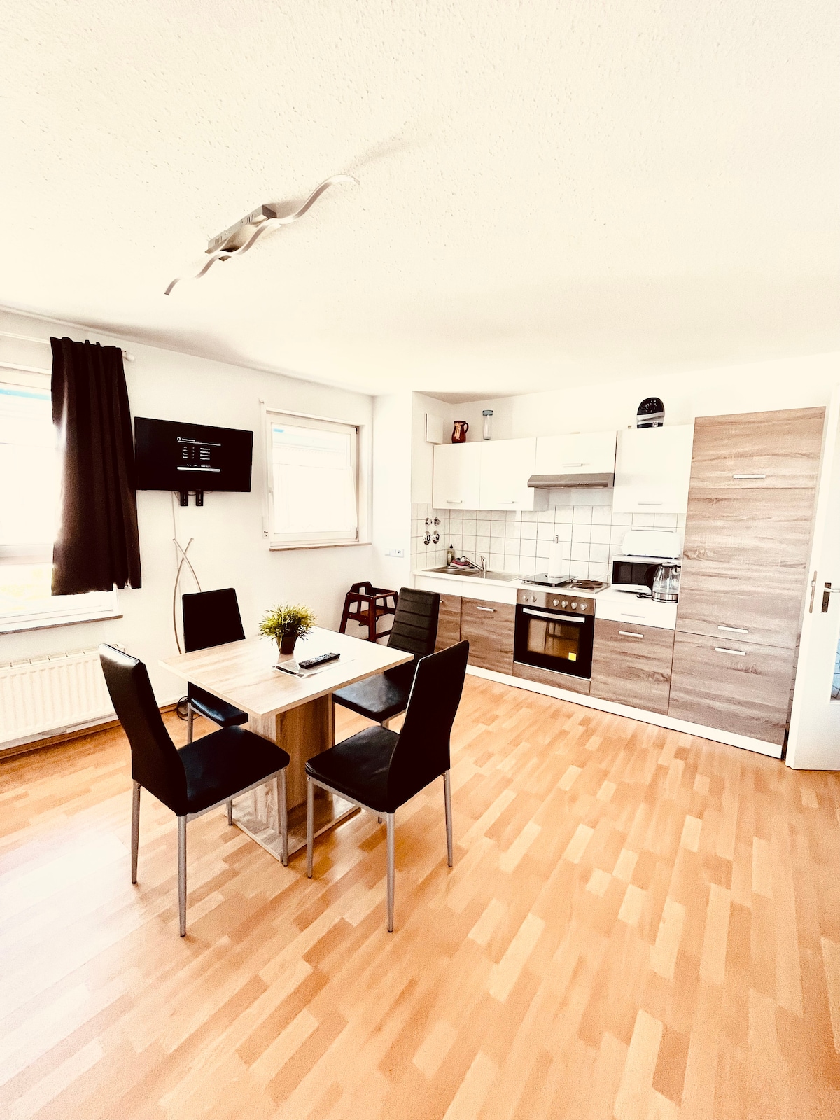 Clean and quiet 2 room apartment with living room and couch, bedroom with box spring bed, kitchen, wifi, dining area and bathroom. Apartment is in the immediate vicinity of the outlets and can be reached in 5 minutes on foot, from the balcony you have a wonderful view of Metzingen and the outlets, restaurants and grocery stores are within easy reach in a few minutes, in the immediate vicinity there are also parking facilities