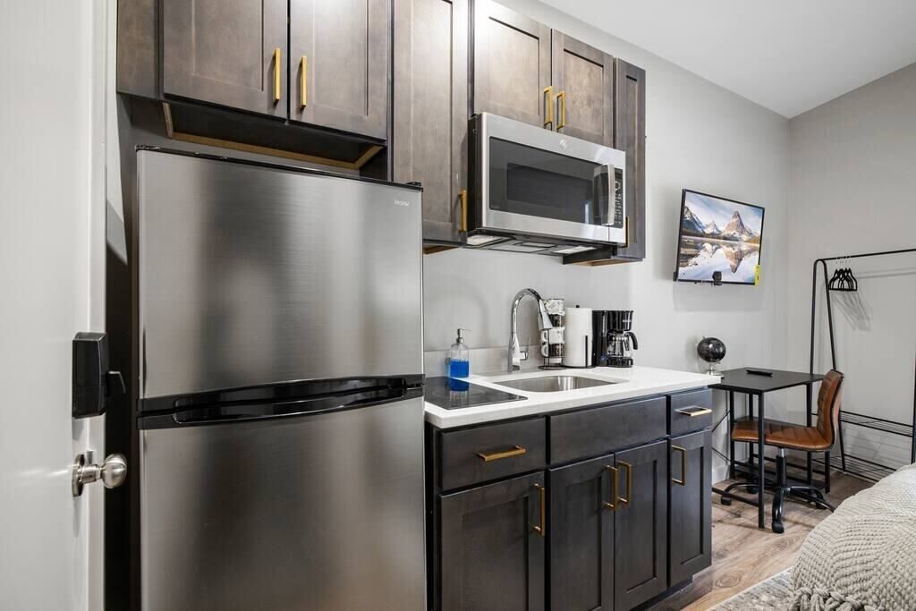 The kitchenette is equipped with all the basic amenities you need to prepare light meals and snacks. Whether you're whipping up a quick breakfast or reheating leftovers from a local restaurant, you'll have everything you need at your fingertips.
