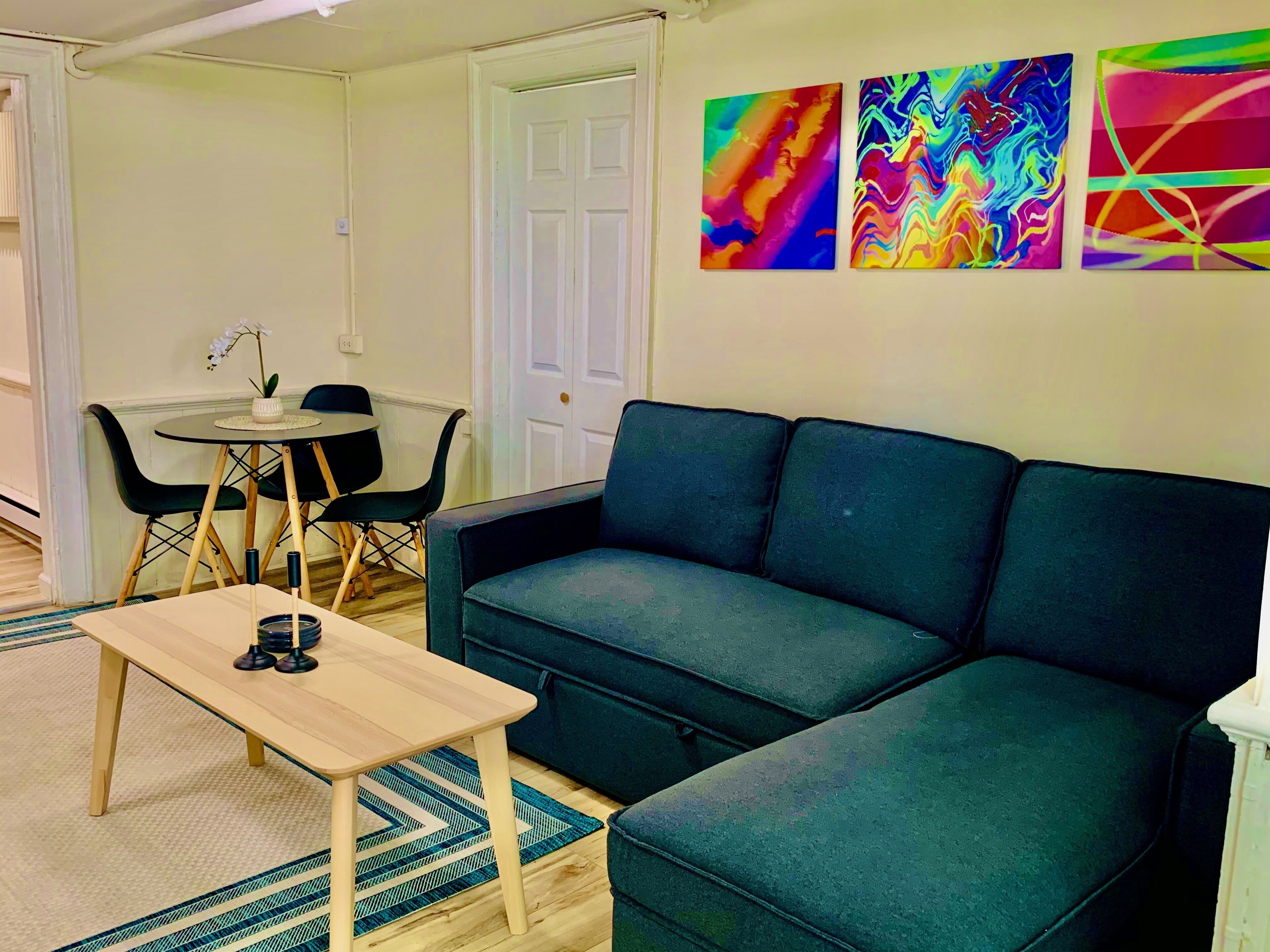 Our cozy unit features a queen-size bed and a pullout couch. Unwind on the private porch with private parking. Perfect for visitors, we're in the heart of Middletown's charm!