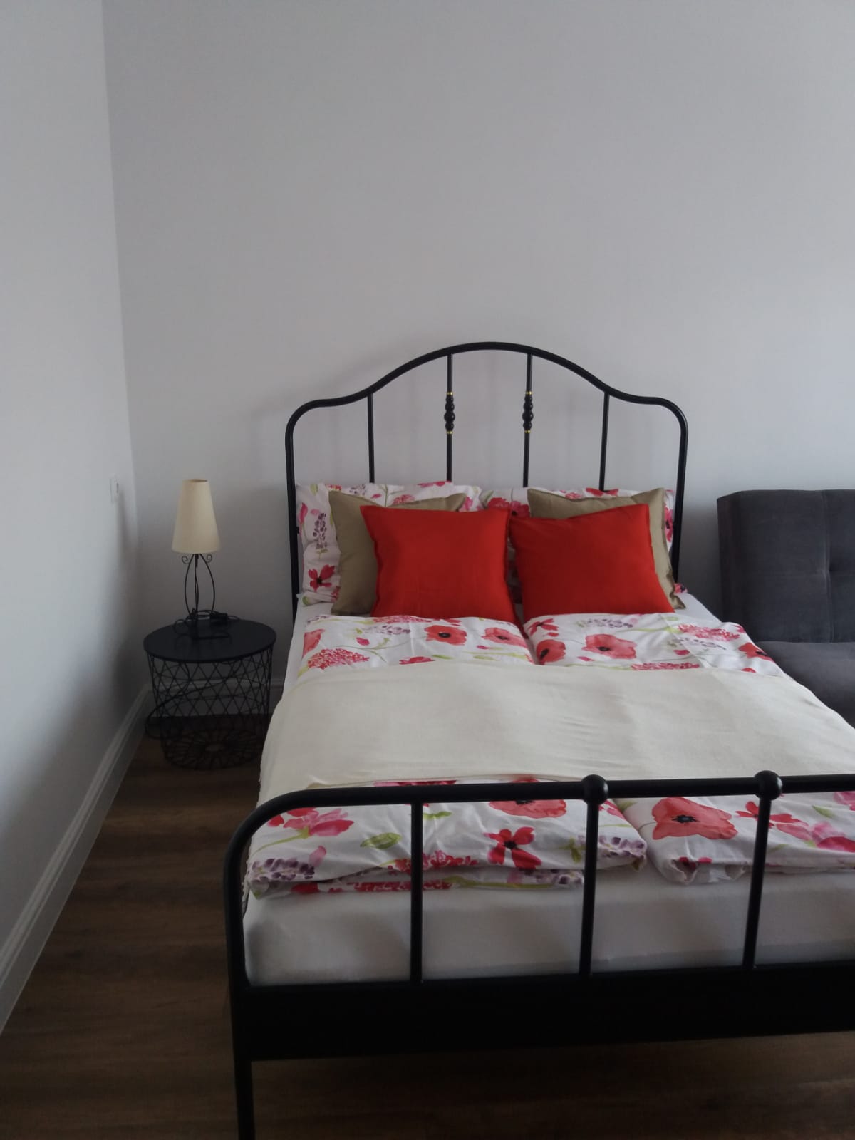 1-room apartment with a double bed, bathroom with shower and balcony.