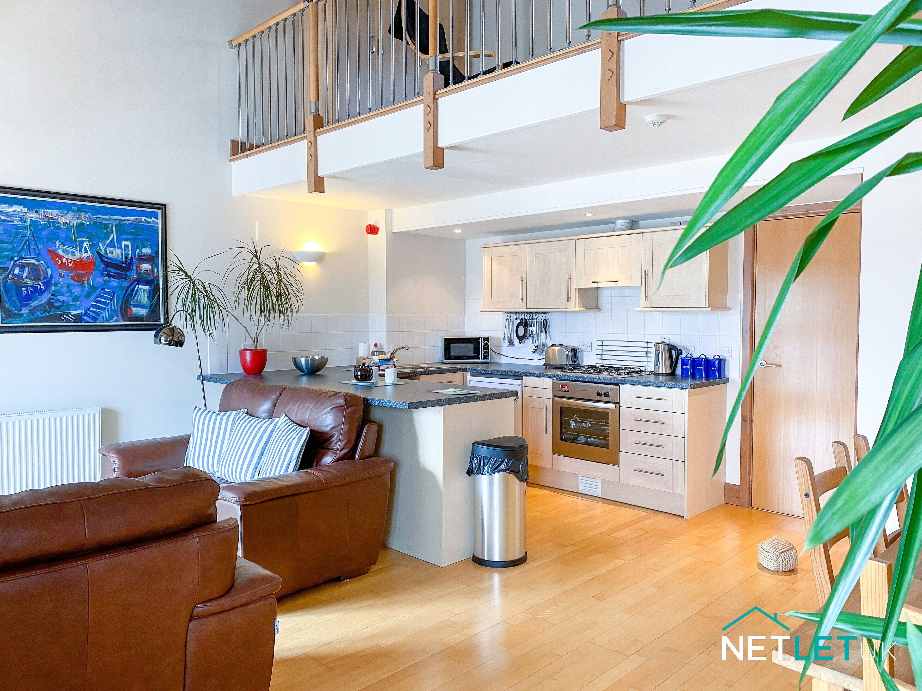 This is a modern, clean, well laid out loft. Comfy leather sofas and large dining area. The marina has plenty to occupy you and comes to life at night.