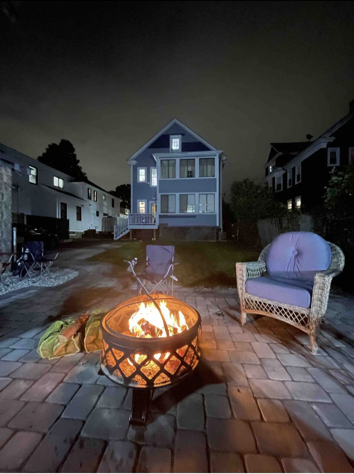 Guests are welcomed to use the front porch (shown in pictures) and the backyard. There are four outdoor chairs and a fire pit that’s designated for our guests!